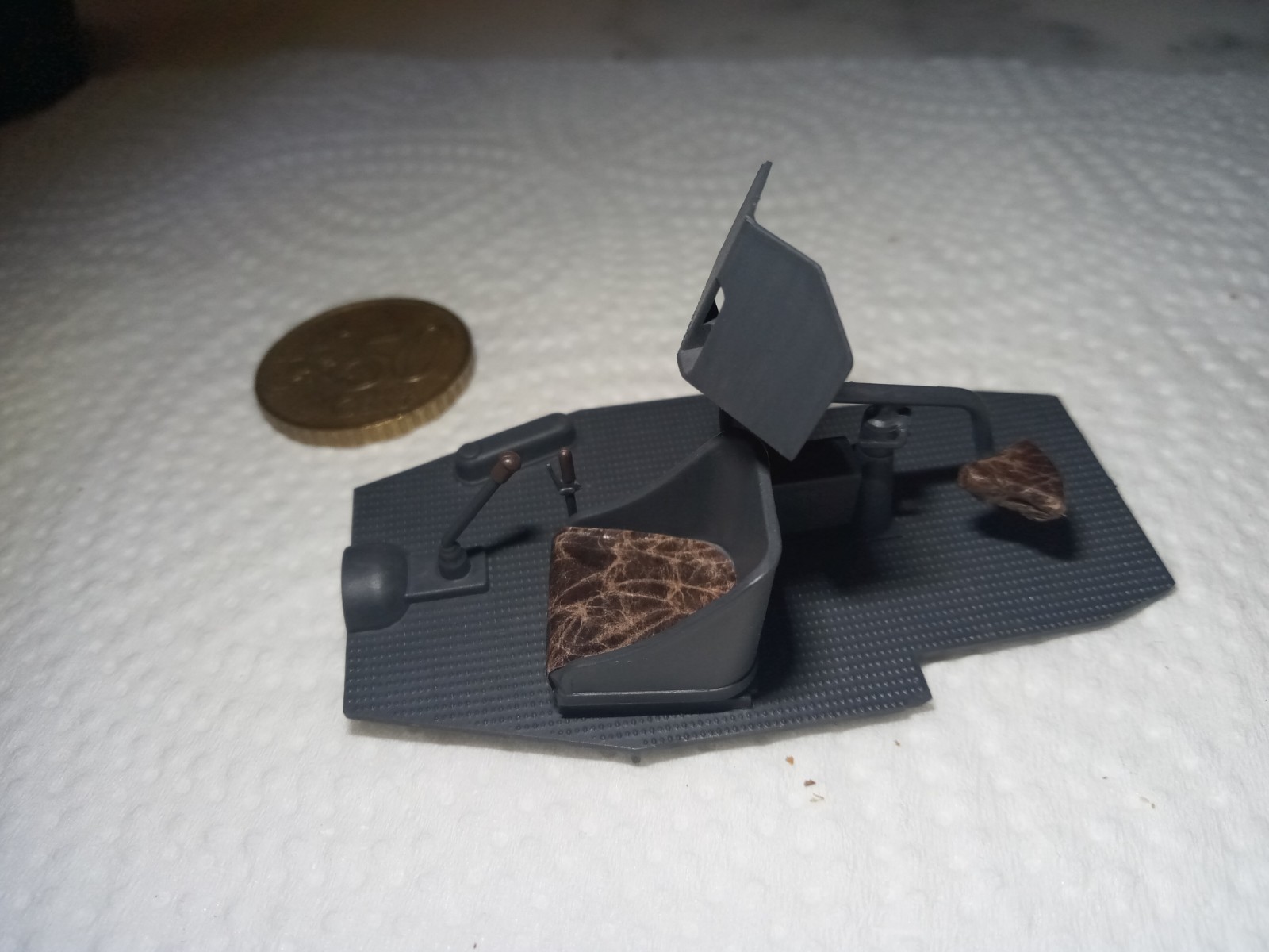 Ja. Die Sitze sehen sehr realistisch aus. Ich nehme meistens eine dünne Lage eines Papiertaschentuchs und klebe diese auf. Dann Bemalung. Ich imitiere damit eine Stoffoberfläche, weil ich skeptisch bin, dass die teures Leder dafür nahmen. Nichtsdestotrotz sieht das Klasse aus und Deine Arbeit ist sehr vielversprechend. Bin weiterhin dabei.