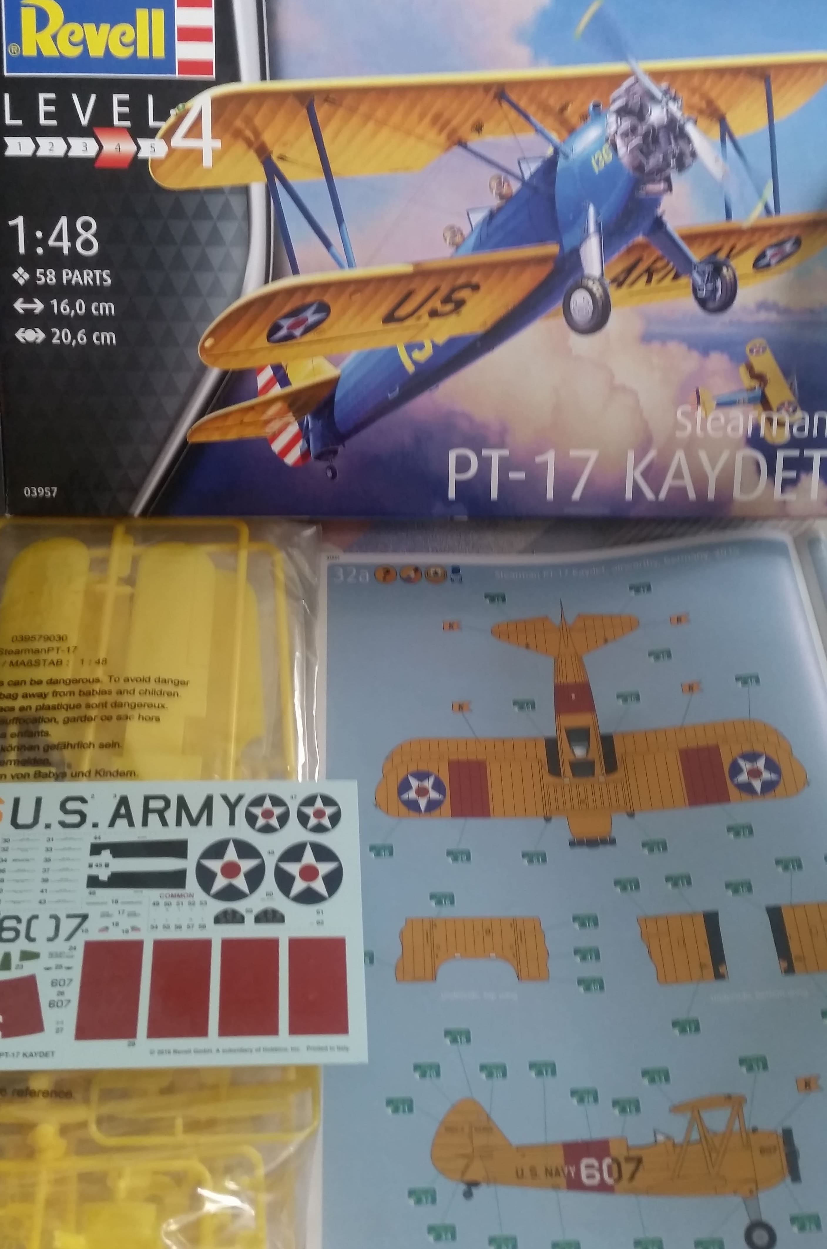 Ich hab voriges Jahr die kleine Stearman von Revell in 1:72 gebaut und trotz der alten Formen ist das bis jetzt einer meiner Absoluten lieblinge im Regal . Viel Spaß also mit der großen