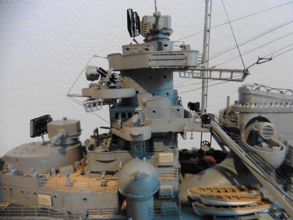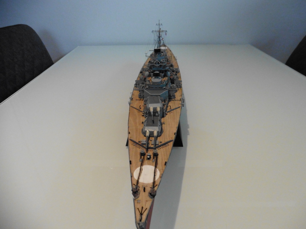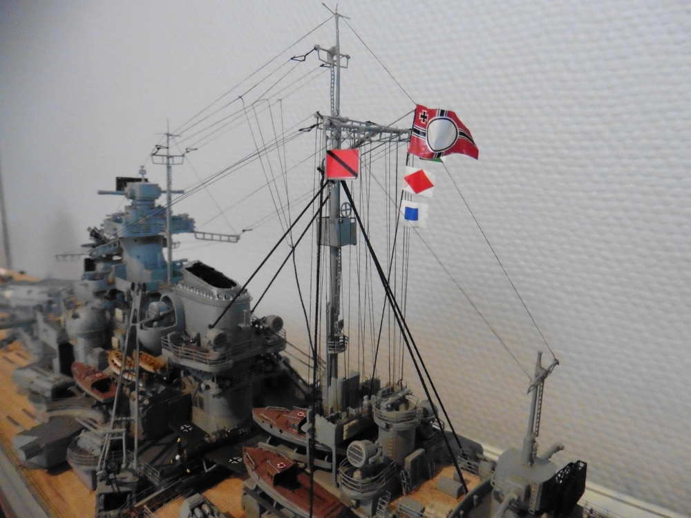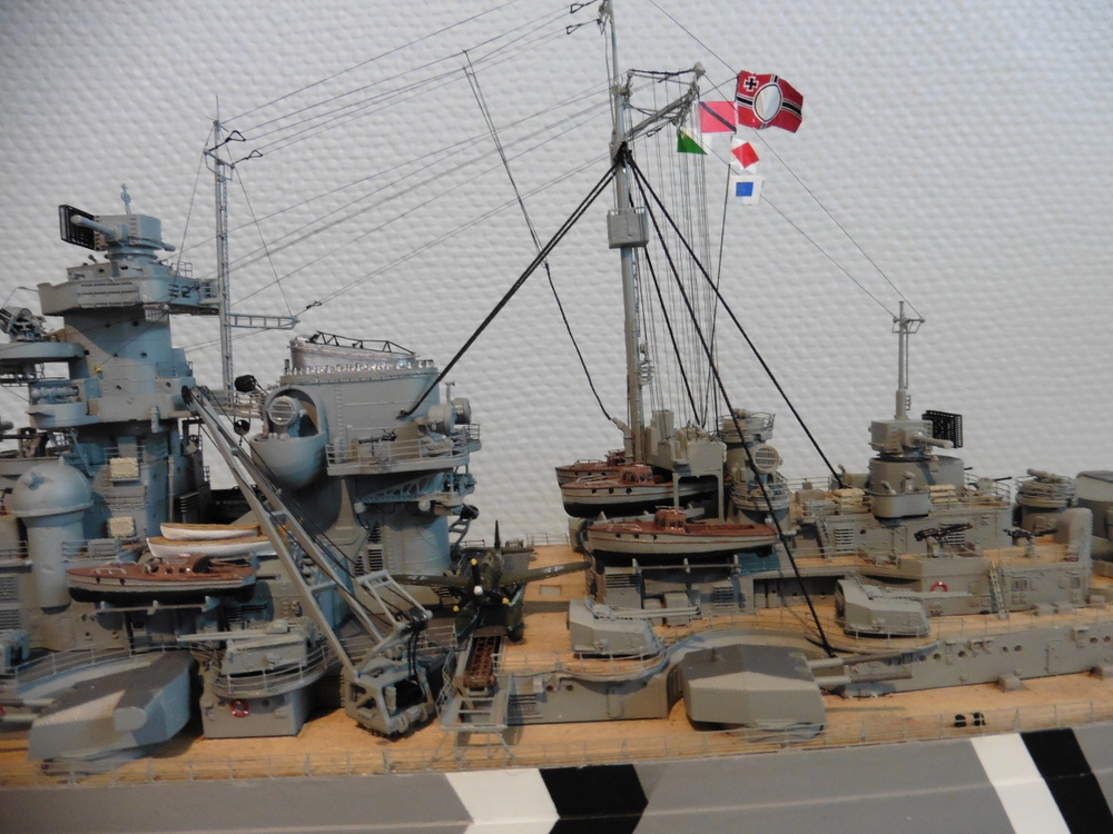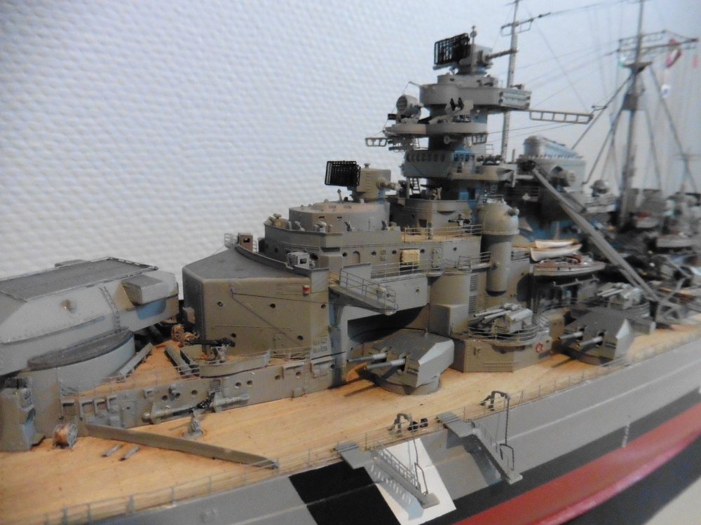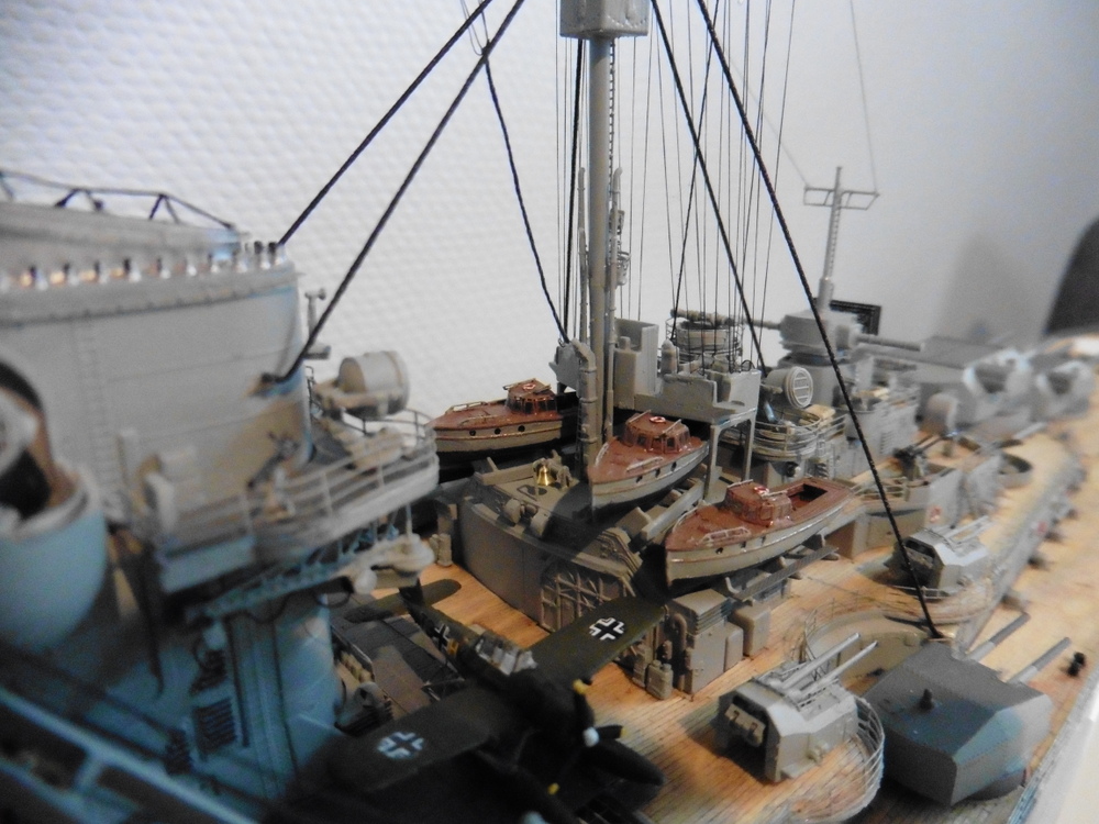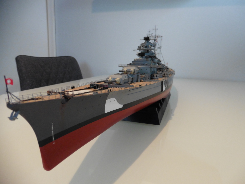 ich habe meine Bismarck fertig gestellt . Historische Korrecktheit war nicht mein Ansatz. Ich habe sie so gebaut wie ich es mir vorgestellt habe . Zum Modell selber kann ich sagen , dass es viel spass gemacht hat es zu bauen . Trumpeter hat mit den Details ordentlich geklotzt , dabei aber einiges aus den Augen verloren was besser sein müßte . Hier nur mal die Beiboote erwähnt. Es gibt noch ein paar andere Dinge , die aber dem Baubericht zu entnehmen sind viewtopic.php?f=47&t=8267