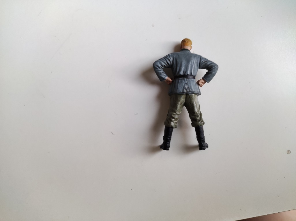 Als erstes entstand vorigen Samstag der gute Mann hier. Er war der einfachste von den vier Figuren, da er bis auf die Pistolentasche waren da kaum Anbauteile dabei.