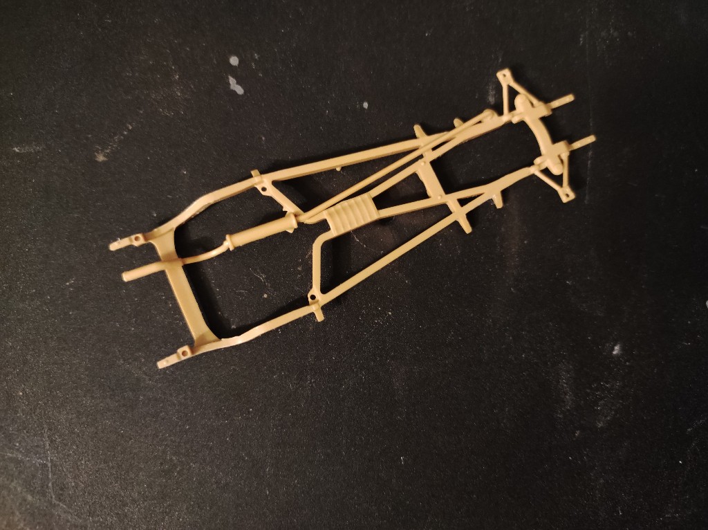 So der Fahrzeugrahmen ist schonmal ausgetrennt, die Abgasleitung ist angebracht. Der ist sogar hol bzw das Loch durchbrochen.