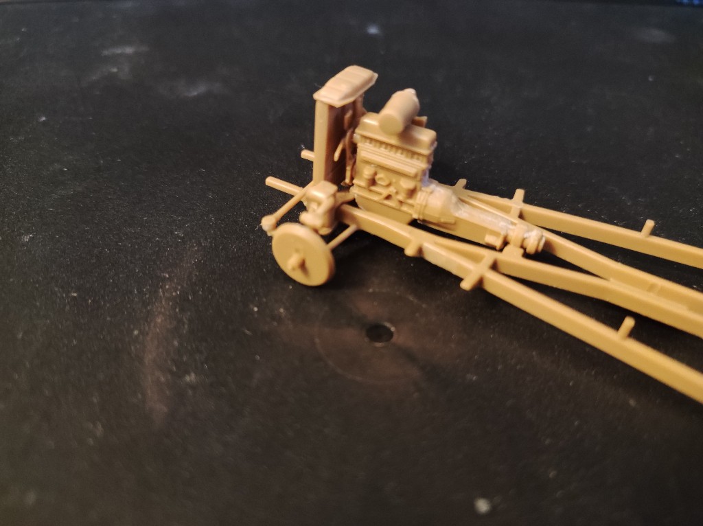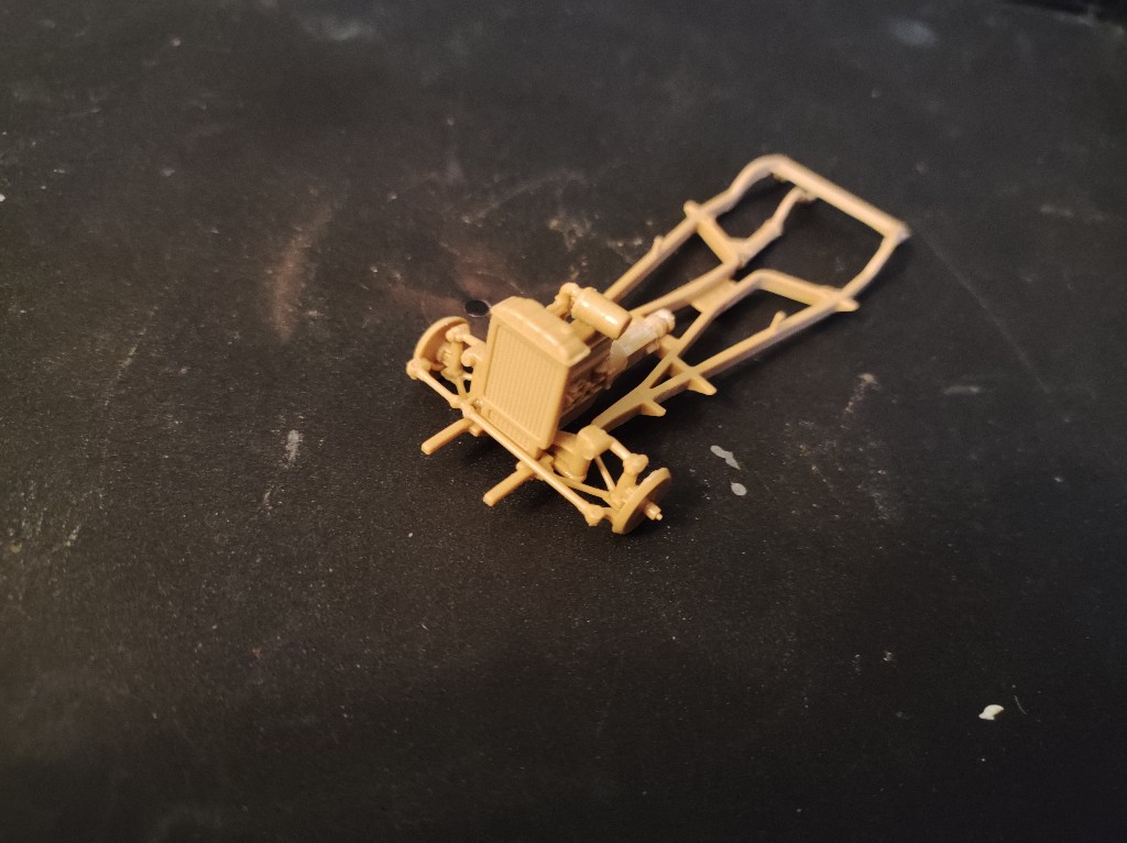 Die Vorder Achse ist auch zusammen gesetzt, hier musste aber der stark ausgeprägte Grad entfernt werden. Die Achse ist leider nicht einschlagbar