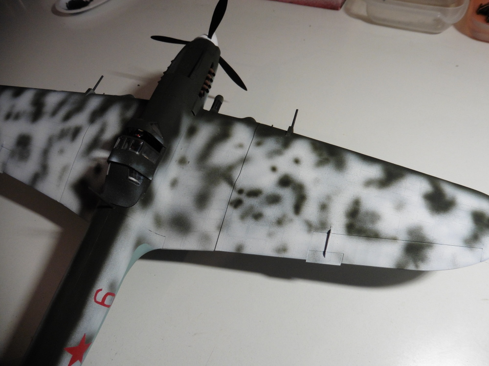 Da es sich bei der Sturmovik um ein Winterflugzeug handelt und mit Kufen ausgestattet ist , habe ich hier dann die Wintertarnung gewählt .