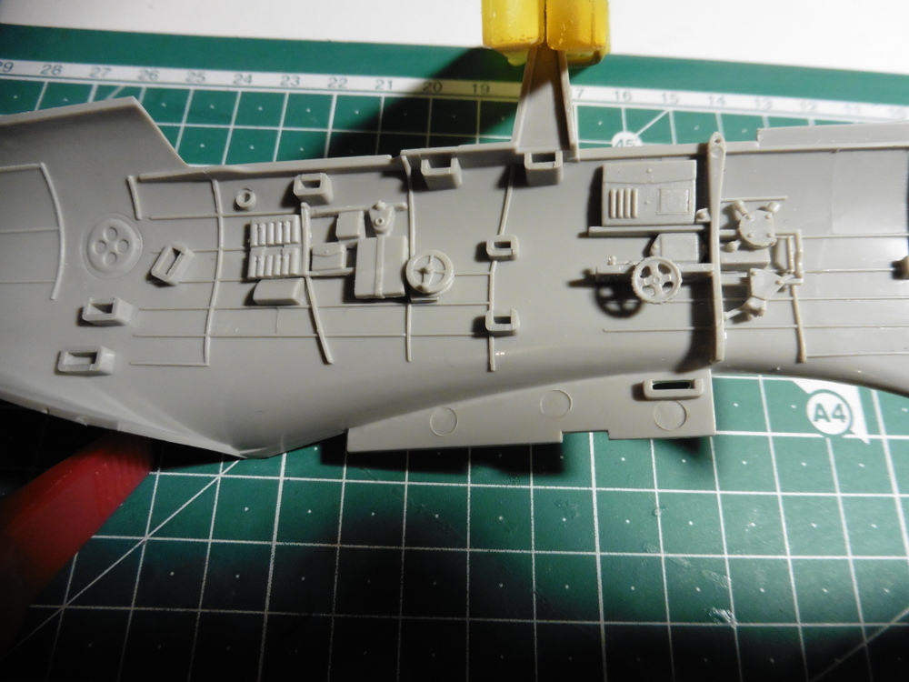 Wie bei fast jedem Flug-Modell beginnt es mit dem Cockpit . Bei meiner Dauntless ist das schon recht extrem , da hier sehr viele Details vorhanden sind.Im groben wird das Cockpit in Zinc chromate type1 lackiert . Ich hatte mir die Farbe bestellt , da nicht in meinem Fundus .