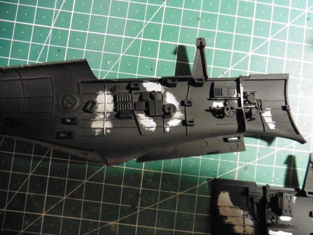 Das ganze wird nun erst einmal mit Fine Primer Schwarz gesprüht um Schatteneffekte etc zu erzeugen .