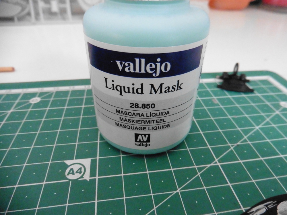 Nachdem die Farbe mit der Airbrush aufgetragen ist und diese dann genügend Trocknungszeit hinter sich hat geht es an freilegen der Alufarbe . Das Maskol härtet leicht aus und hat eine gummiartige Konsistenz, welche aber nicht wirklich auf dem Modell haftet .