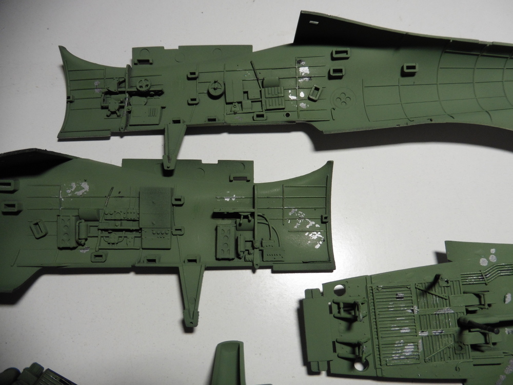 Als erstes wurde jetzt also das Cockpit selbst wie auch beide Rumpfhälten vorgebaut . Sonstige einbauteile wurden in Segmenten behalten um die Lackierungen zu vereinfachen .