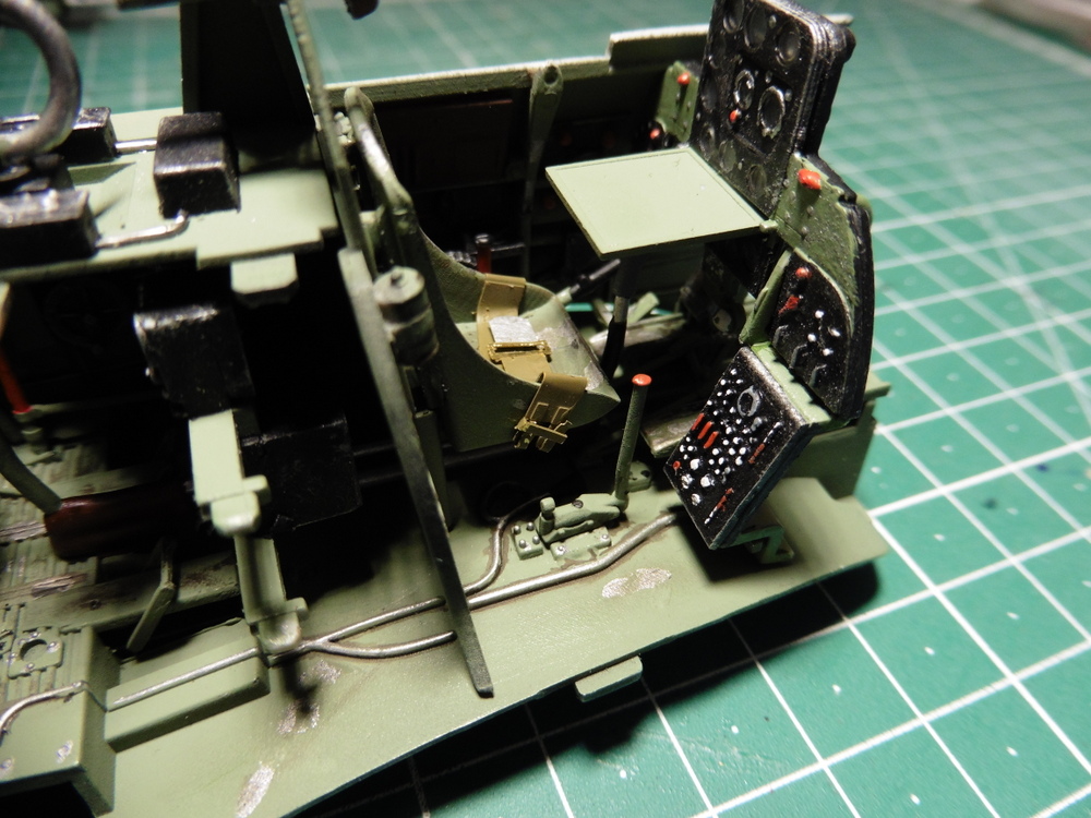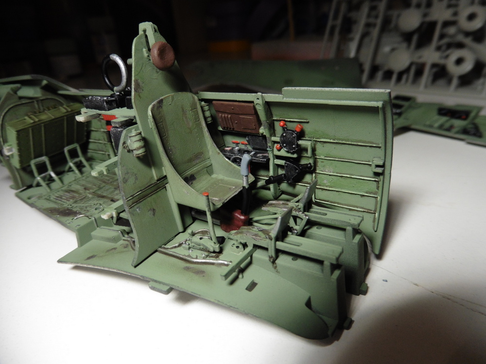 Das waren dann die groben Innenarbeiten. Als nächstes geht es dann an die Instumente / Schalter und Hebel . Danach wiederum um das Cockpit , was dann noch nachgearbeitet wird . ( Schatierungen / Verschmutzung etc )