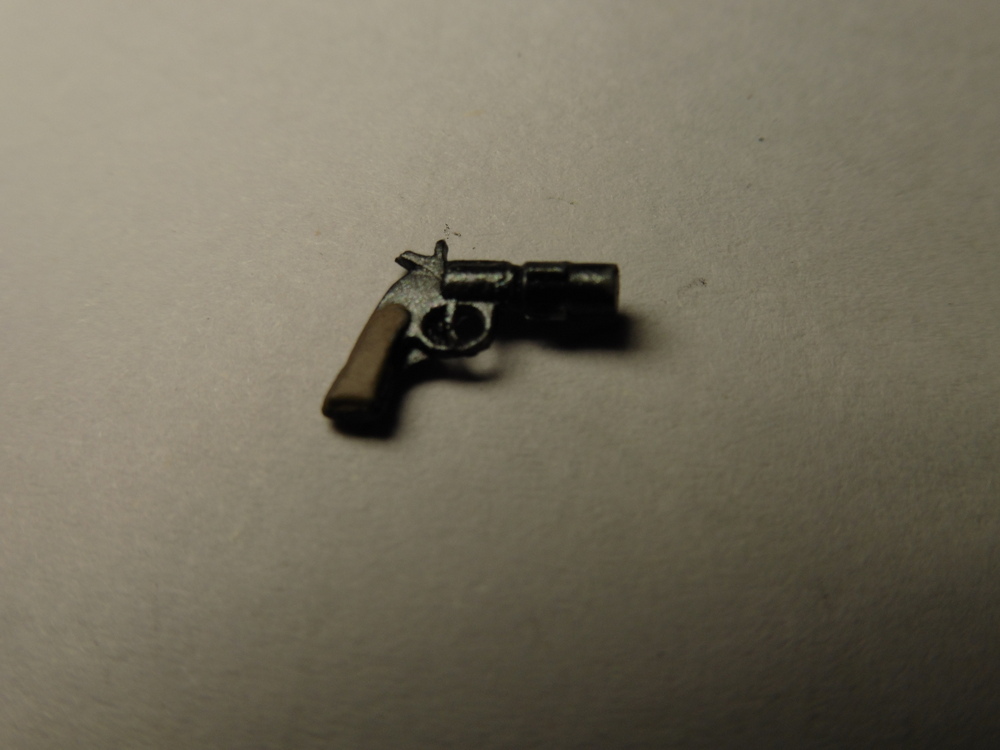 Nächster schritt wäre der Zusammenbau der Rumpfhälften . Musste dann aber mit erschrecken feststellen , dass ich noch eine Kleinigkeit vergessen hatte . der hintere Gunner hatte noch ein kleines Loch im Rumpf und in dieses kam noch ein wichtiges Teil Ja der Leuchtkugelrevolver. Niedlich , aber er gehört dazu .