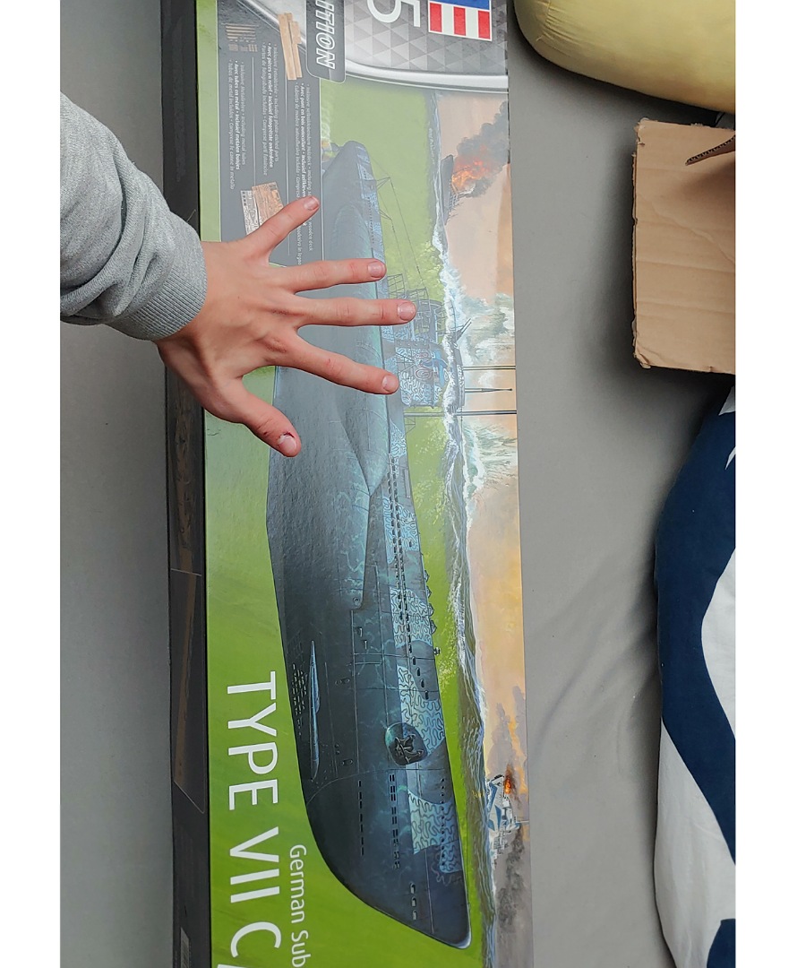 Hallo liebe Modellbaufreunde! Mein U boot ist zwar noch nicht angekommen aber ich kann meinen Baubericht ja trotzdem schonmal hier eröffnen!Gebaut wird das U-Boot Typ 7c von Revell im Maßstab 1/72 und wird mit einer Länge von 90 cm sogar die Maße meines Revell Piratenschiffs toppen! Es wäre eine große Geldverschwendung wenn ich von den vielen beigelegten Ätzteilen etc. keinen Gebrauch machen würde deswegen werden die natürlich verbaut werden. Ich werde noch schauen ob ich das U boot stark weathern will oder nur leichte Gebrauchsspuren andeuten werde. Hängt davon ab wie es mir dann fertig angemalt gefällt.