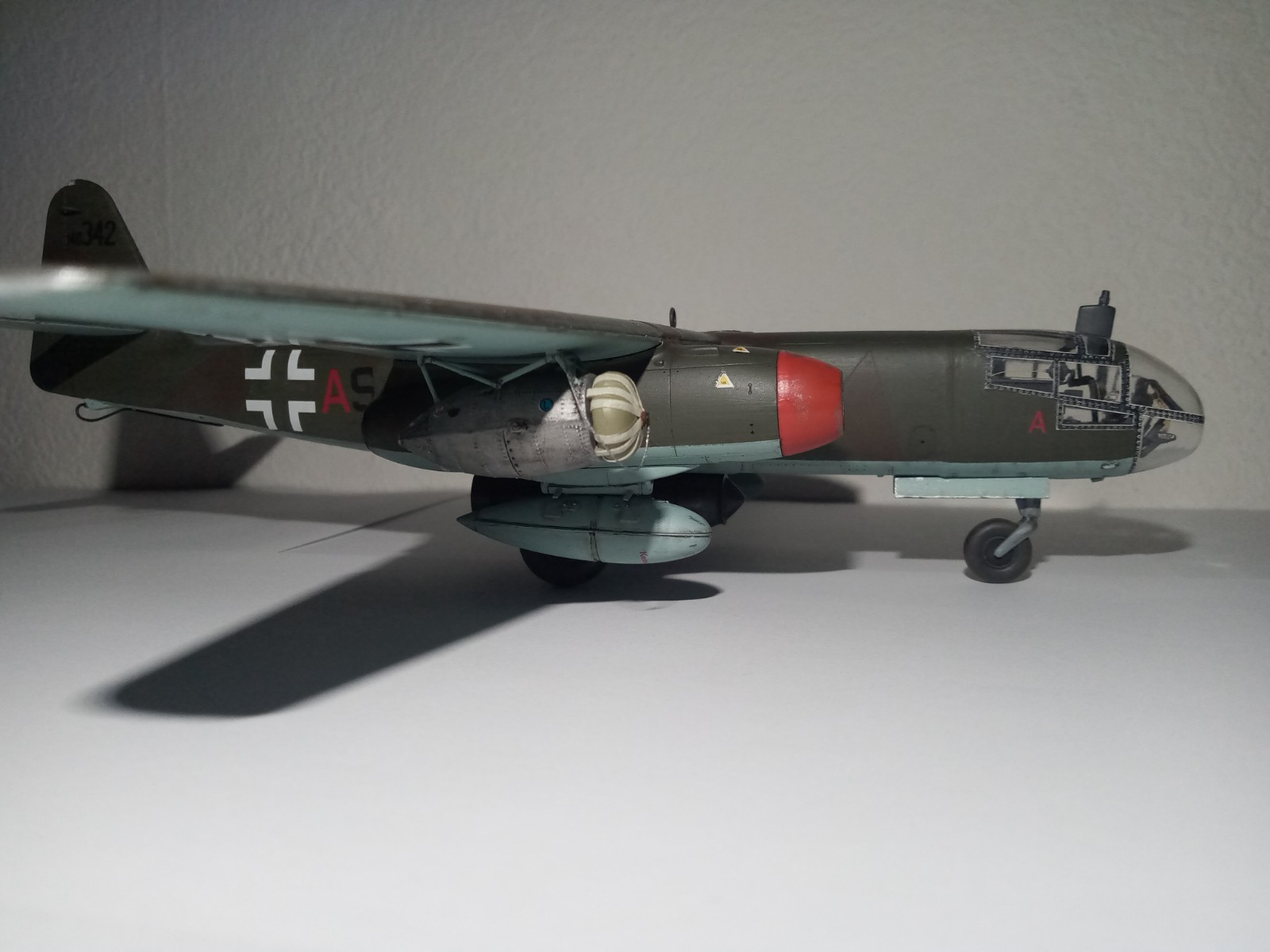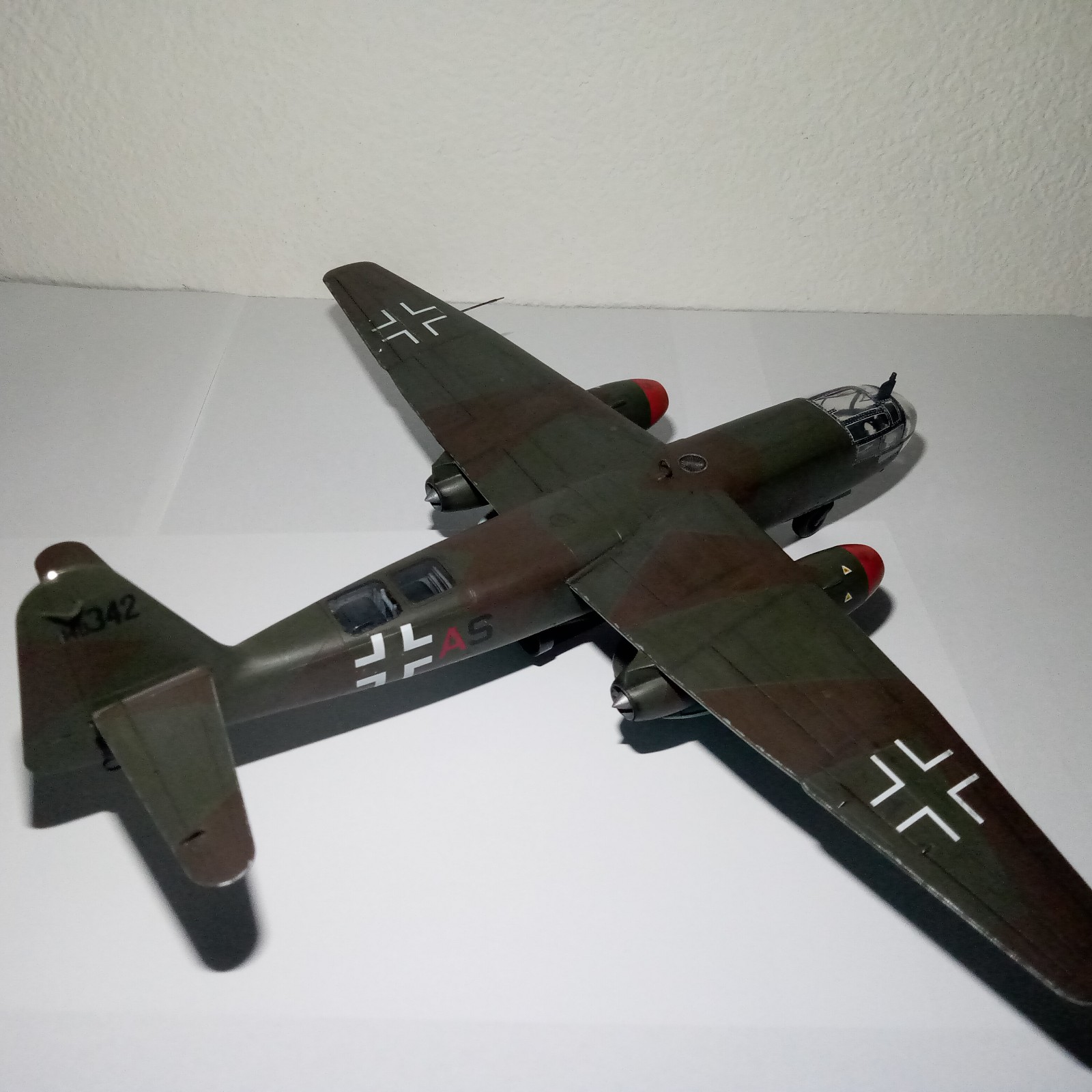 der Kennung zufolge dürfte es sich bei Deinem Modell um die Arado Ar 234 B-2, Werknr. 140 342, F1+AS des Kampfgeschwaders 76 (J), 8. Staffel, 3.Gruppe, von Oberfeldwebel Friedrich Bruchlos (geb. 07. 02.1919 in Berlin Pankow) handeln. Wie bereits von Shir Khan im Baubericht erwähnt, wurde er beim Angriff auf die Remagener Eisenbahnbrücke abgeschossen.