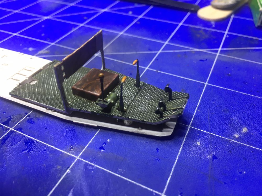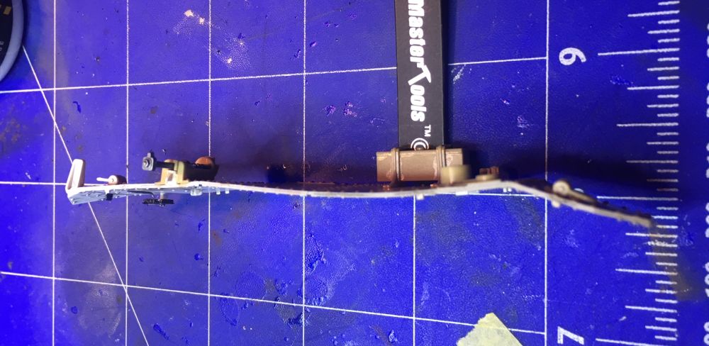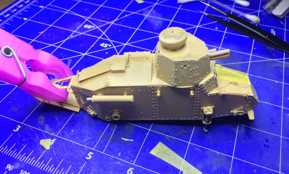 Außerdem wurde der "Schwanz" zum Verhindern des Überrollens aus 9 Teilen zusammengebaut und montiert. Auch hier ist alles super detailiert. Es kommt später noch eine aufgerollte Plane dazu, dies aber erst nach der Lackierung. Trotz guter Passgenauigkeit habe ich den filigranen Anschluss an den FT-17 leicht zur Sicherheit fixiert.