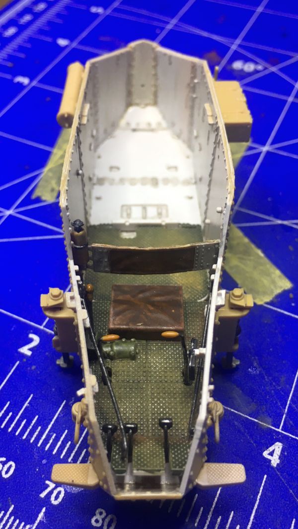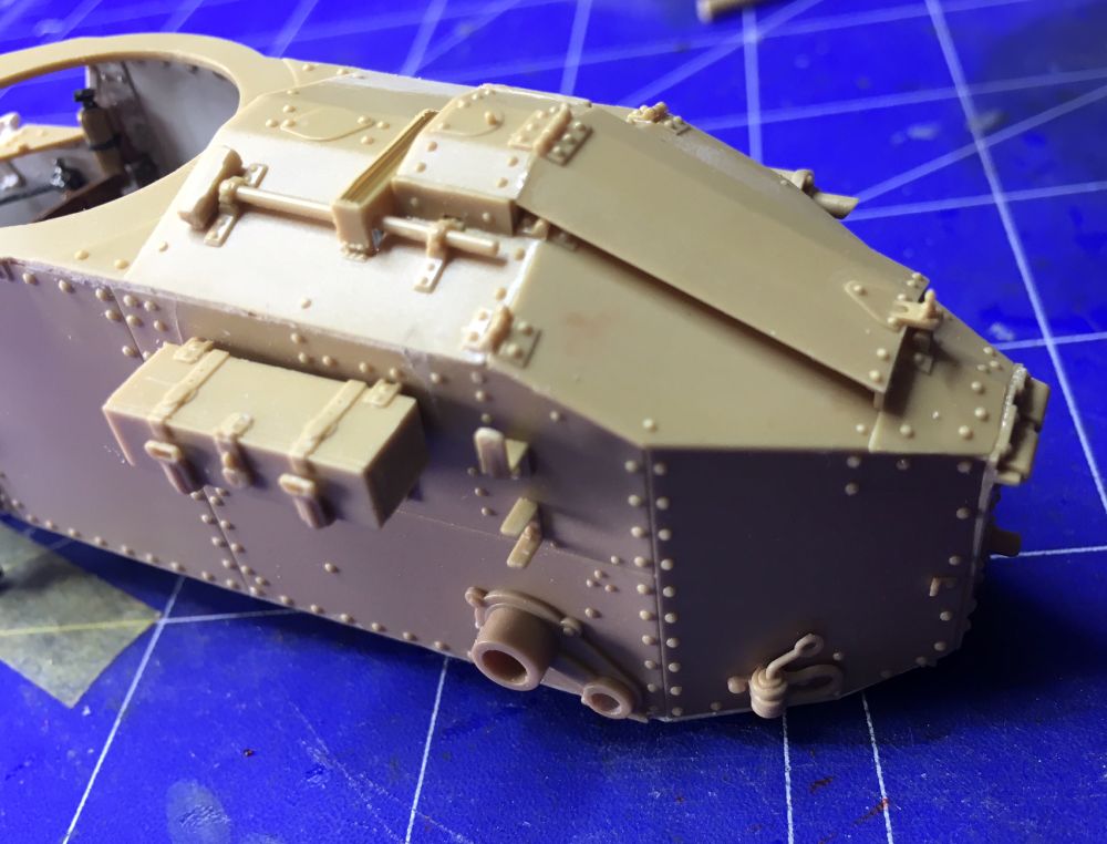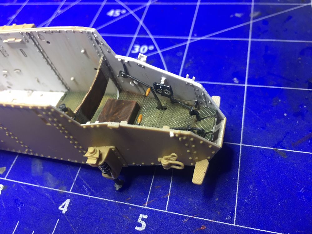 Dafür ist eine kleine WW1 Base dabei. Der Bausatz ist sehr gut detailiert. Innen wie außen sind massig Nieten und Schrauben von denen viele später gar nicht zu sehen sind.