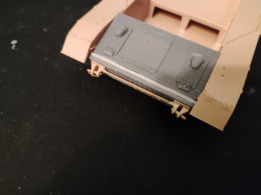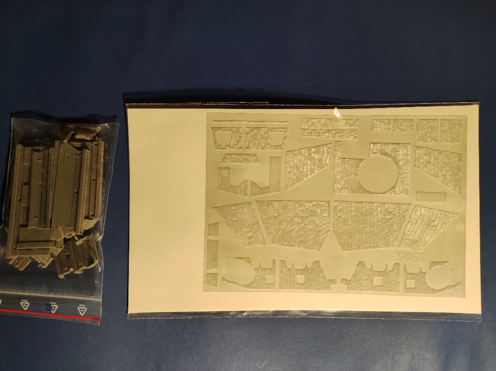 Doch dann musste ich feststellen wie blöd ich doch bin...ich hab seit Beginn des Projekts ein Zimmeritset von Atak Model hier liegen und noch nicht geöffnet, weil ich dachte: ja das Zimmerit wird einfach zum Schluss aufgeklebt...ja das dachte aber auch nur ich. Ich muss da auch Teile die bereits angebracht sind ersetzen