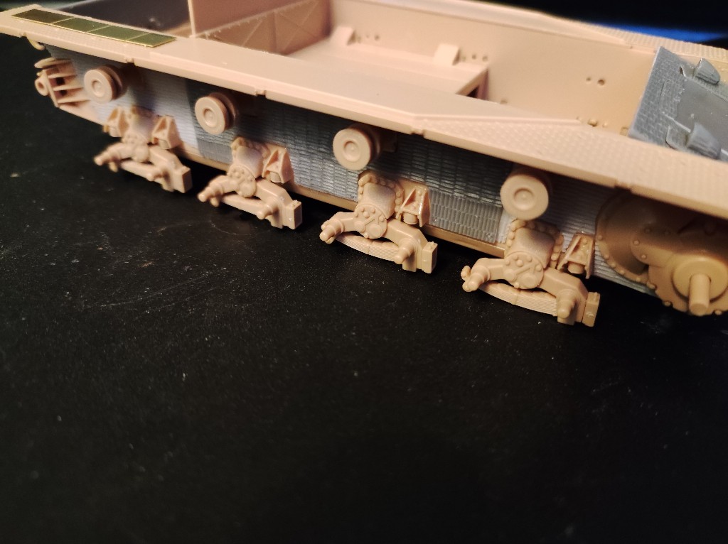 Das Zimmerit am Laufwerk war Recht schlecht, hier waren Resin und Vacu gemischt, damit waren die Teile unterschiedlich Dick und hier muss man die Übergänge definitiv machen