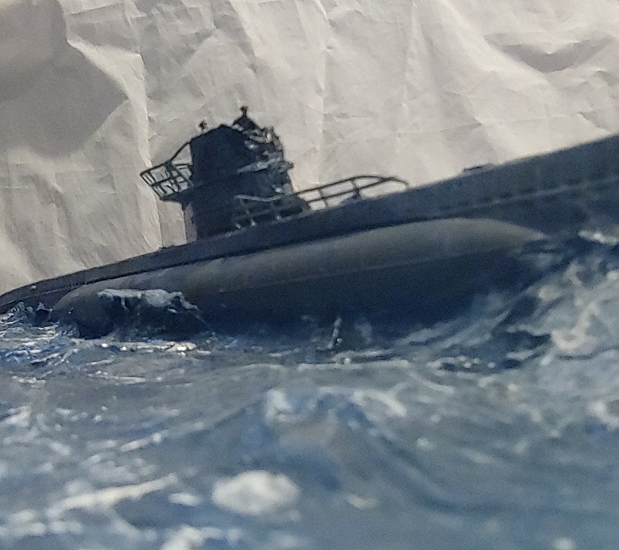 Also das hier wird ein Geschenk für meinen Vater zu Weihnachten der ein großer "das Boot" fan ist, es handelt sich hierbei um ein Diorama dass die Szene als der Motor des U-Bootes anspringt und das boot sich durch die Wellen schlägt, darstellen soll. Mir gefällt die Welle auf Steuerbord weiter vorne nicht ganz so sehr ,ansonsten bin ich recht zufrieden mit dem Ergebnis abgesehen davon dass die Wellen nicht ganz exakt so wie im Film aussehen... wie findet ihrs? Übrigens tut es mir leid dass der Jürgen Prochnow und sein 1Wo auf der Brücke so unscharf sind ich habe sie nicht schärfer hinbekommen.... (ach ja und vielleicht fällt jemandem auf das ein paar kleinere Teile am U-Boot noch fehlen, keine Angst die werden noch befestigt aber es geht hier ja erstmal ums Diorama)