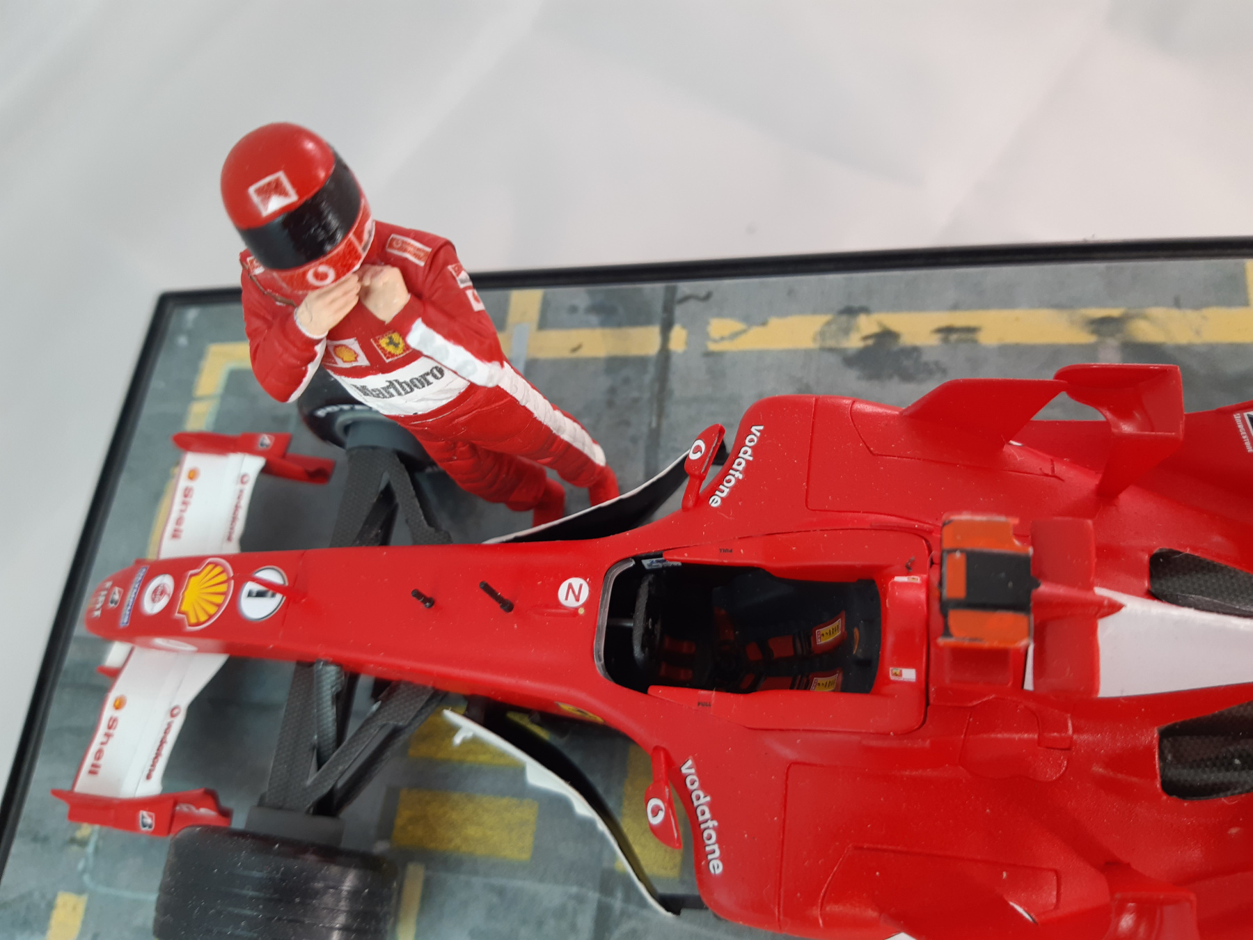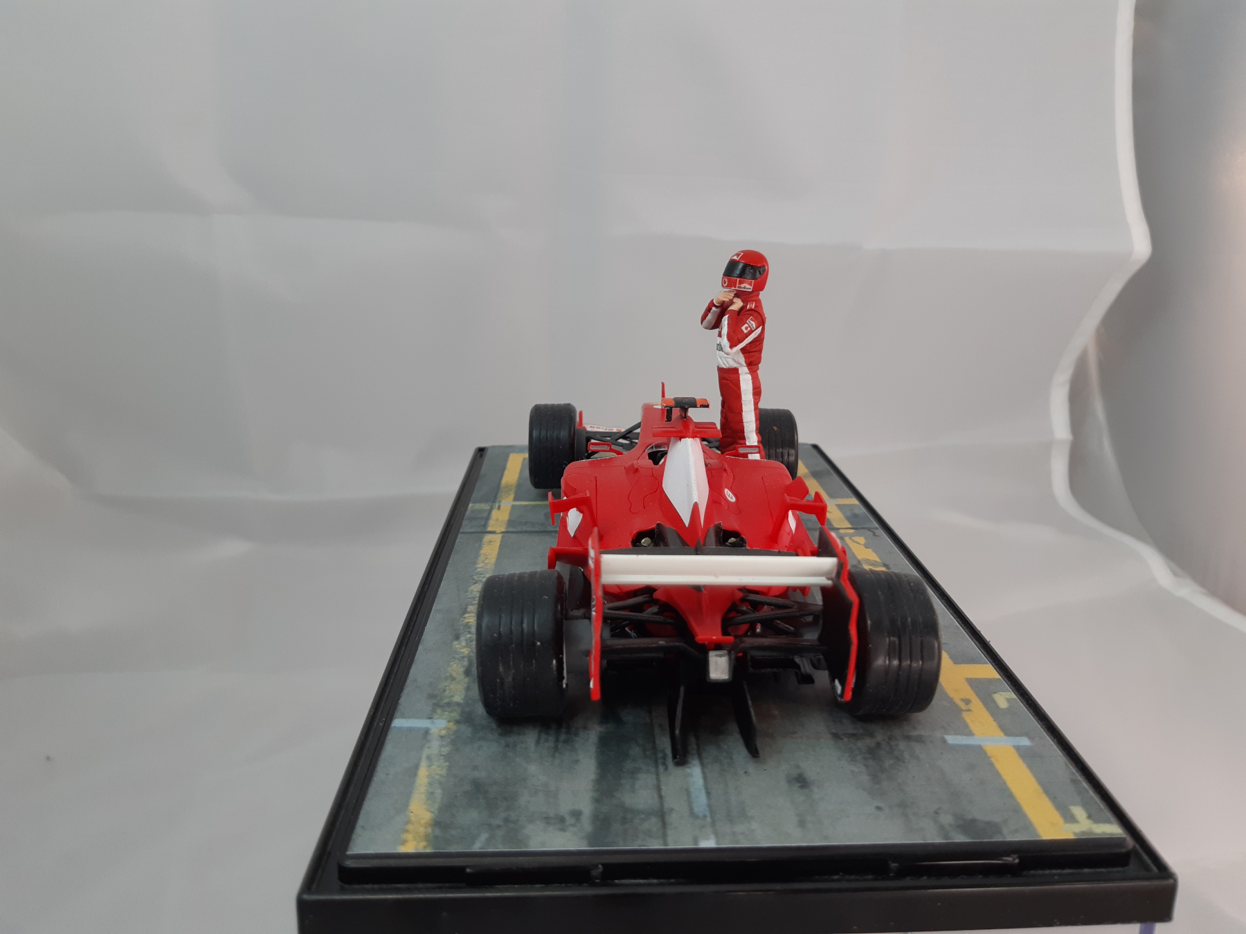 Ich hatte vor vielen Jahren schon mal den Formel 1 Wagen von Mercedes gebaut. Da habe ich diese selbe Base gebaut und auch mit der Boxengasse beklebt. Damals habe ich mir gleich zwei Folien gekauft und die zweite gleich hier verwendet.