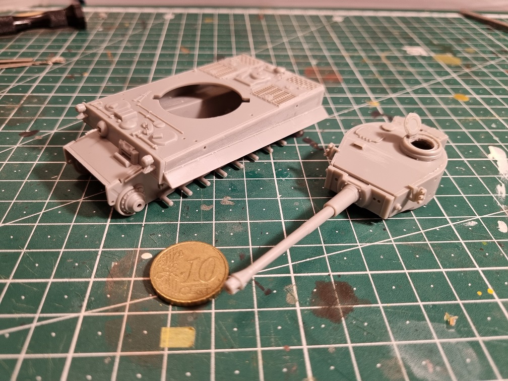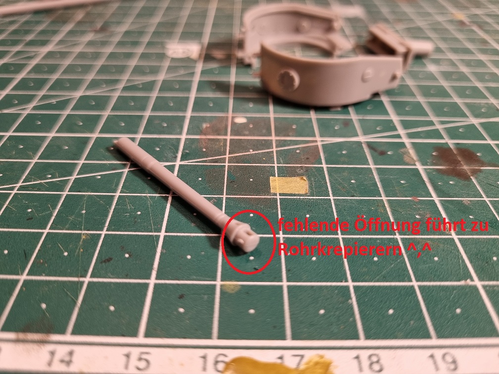 als nächstes das Kanonenrohr. Wie so oft bei diesem Maßstab hat das Rohr vorne keine Öffnung... nääää das geht garnicht