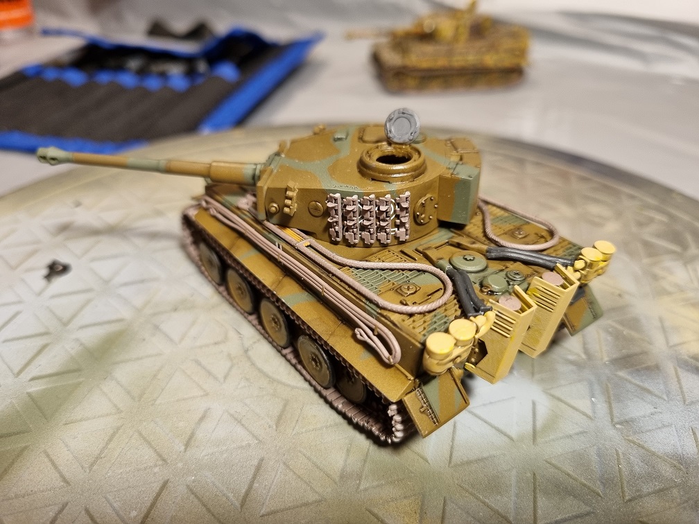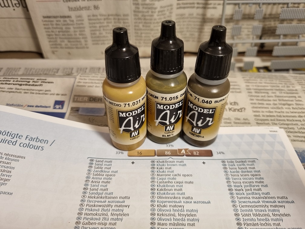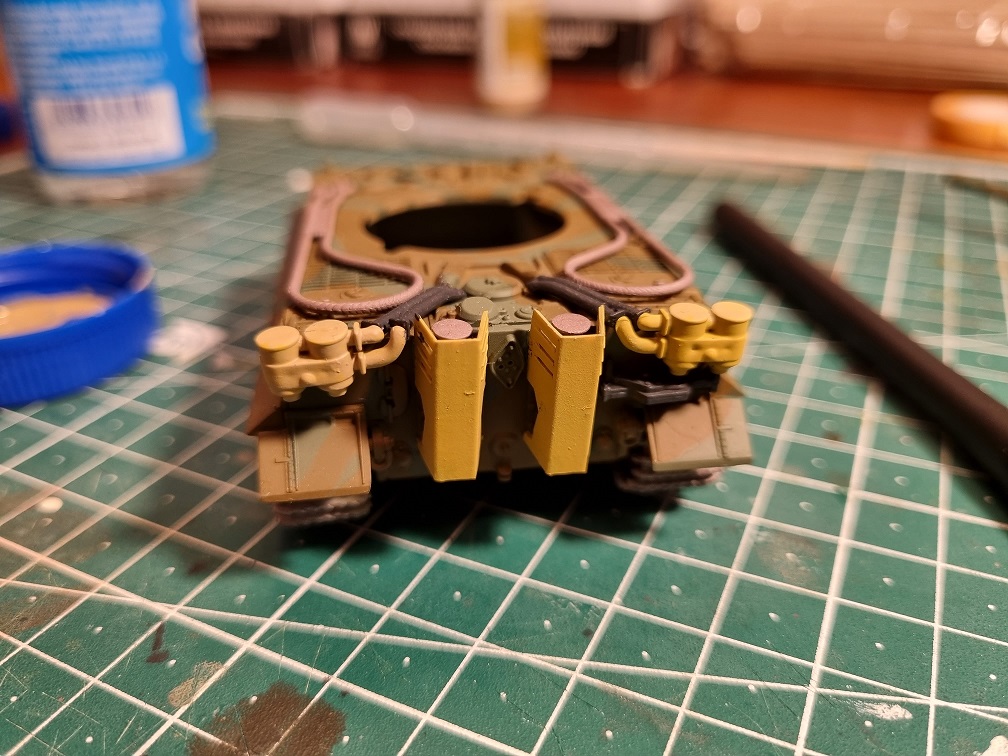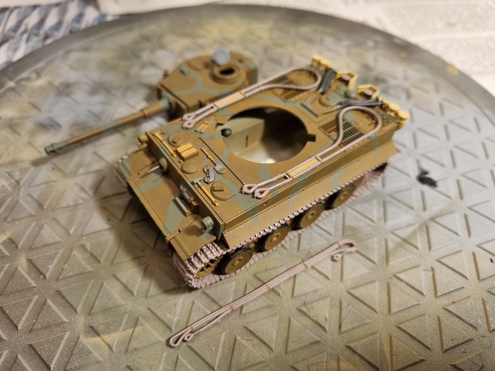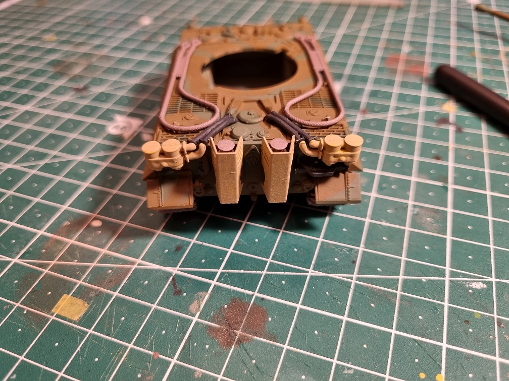 Ebenso wie die komplette Auspuffanlage und die Schleppseile. diese Teile kommen sogar erst nach der Tarnlackierung dran.