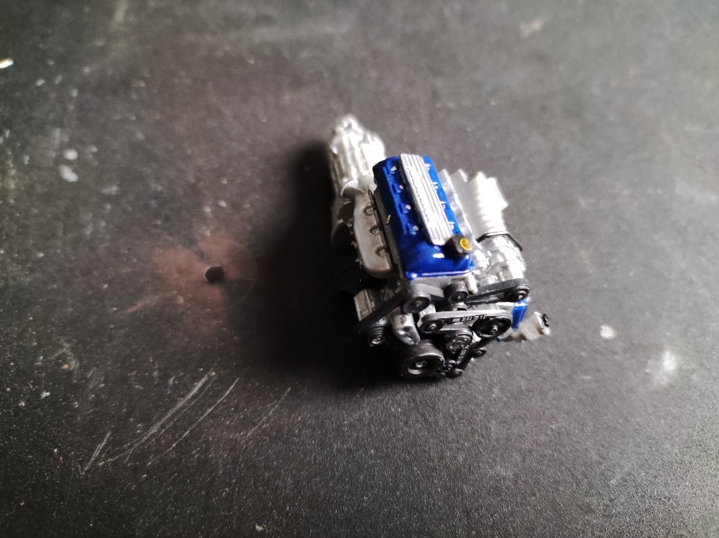 Eigentlich müssen noch Decals aufs Zylindergehäuse, aber da warte ich noch ein Moment. Aber gerade einmal den Motor für Tag 11, da mehr nicht möglich ist (und beide Spritzlinge auch leer sind). Trotzdem finde ich den Motor stark und ist einfach ein Waffe, die PS springen ein förmlich an