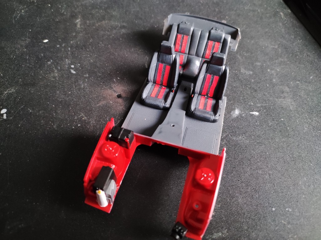 Dann habe ich auch die Sitze bereits lackiert und mit den Decals versehen, auch ein kleinwenig aufgehellt. Insgesamt sieht es wohl ganz vernünftig aus