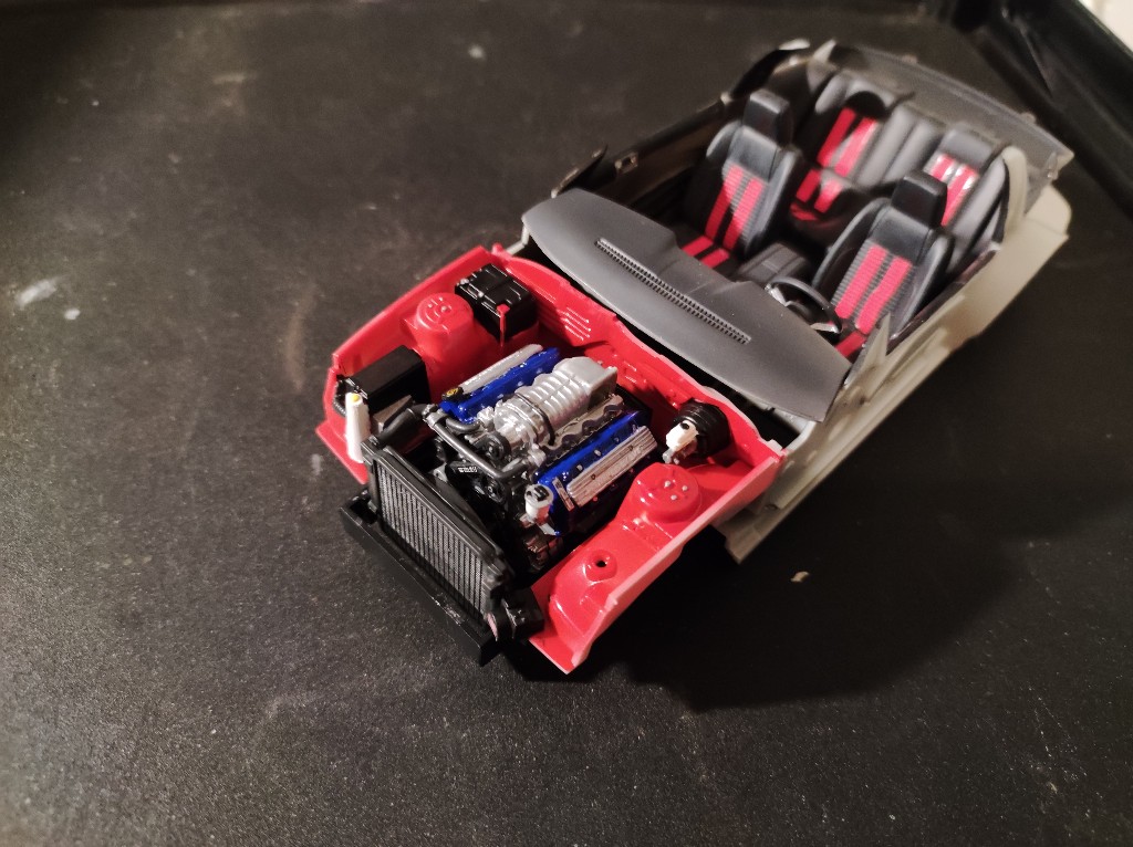 Einzelne Teile müssten bemalt werden, andere angebracht und bemalt werden. Viele kleinere Teile wurden ebenfalls an gebaut. Wie z.b. der Unterbodenschutz vom Motor
