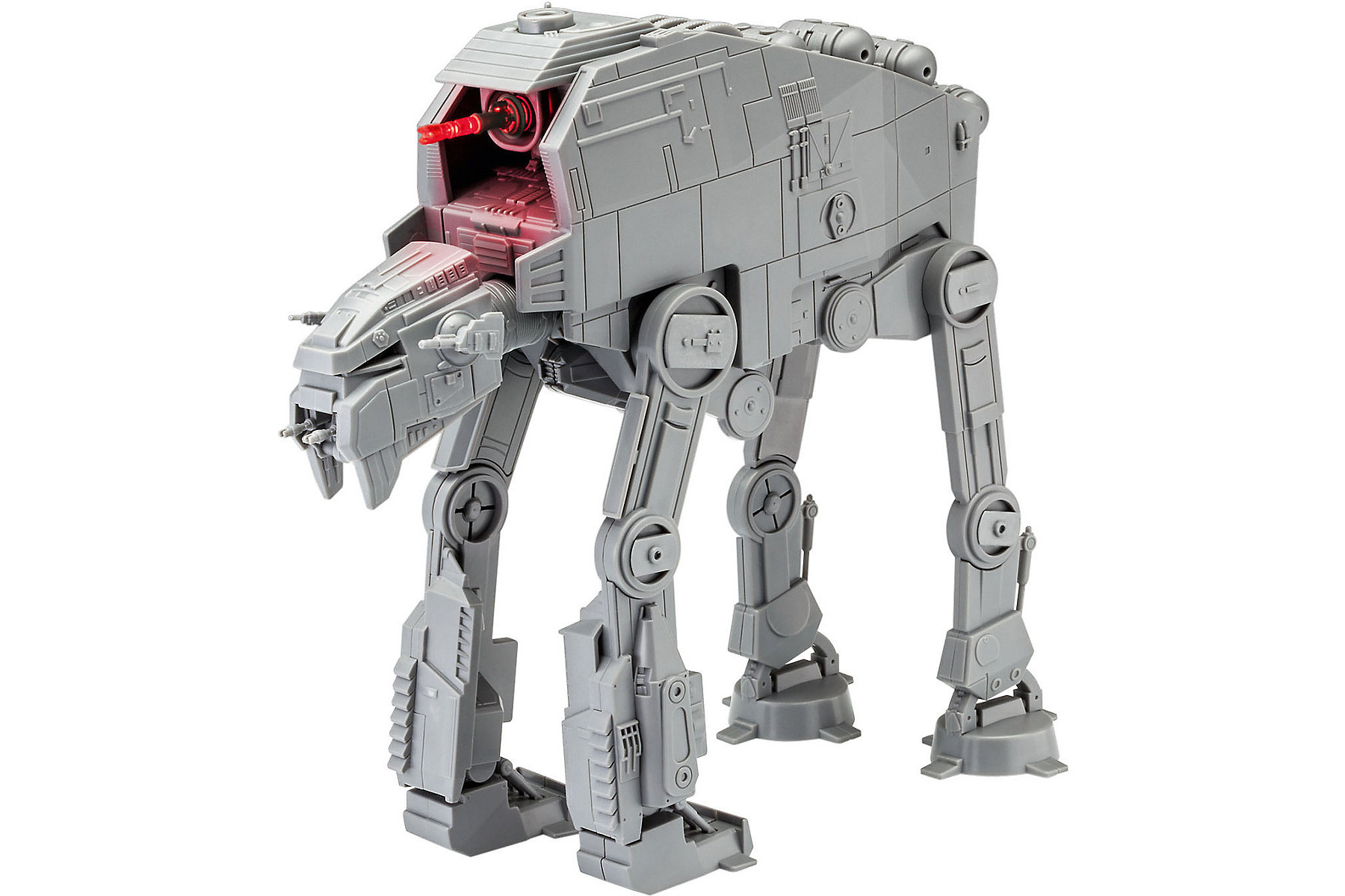 Das Revell "Build & Play" Kit des Walkers ist verglichen mit dem Filmmodell schon deutlich abweichend, was die Strukturen angeht. Die ganze Licht-und-Sound-Einheit zum Beispiel steht viel zu hoch aus dem Rumpf heraus. Da musste einiges an Plastik weg, um es einigermaßen bündig hinzubekommen.