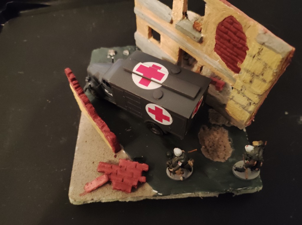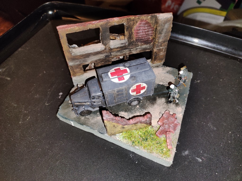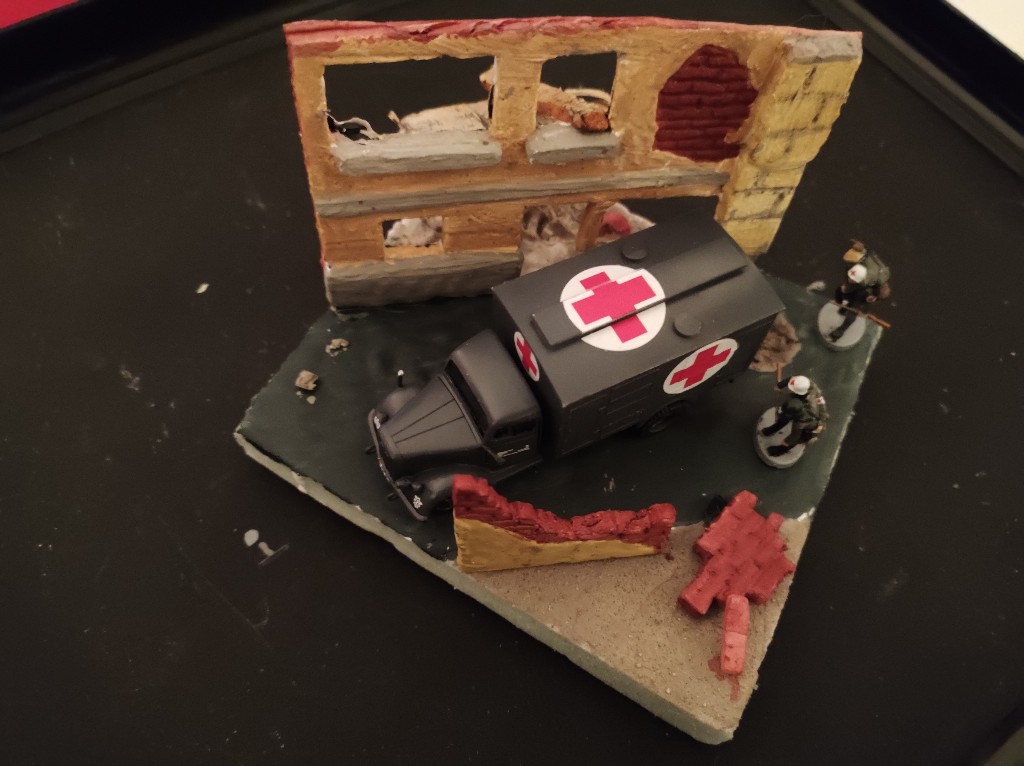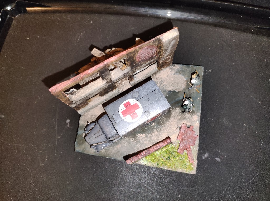 Doch was solls werden? Ich bin aktuell dabei diesen LKW in der Schlacht von Sedan 1940 darzustellen, wie er am Verbandsplatz zwei Soldaten abholt.