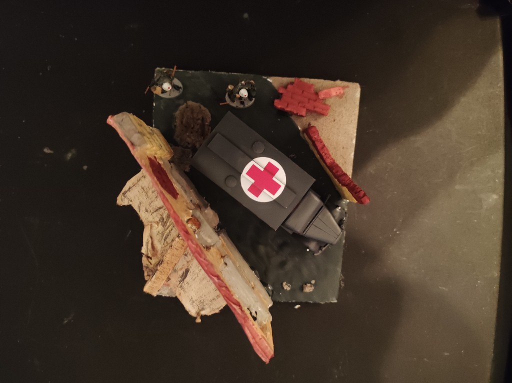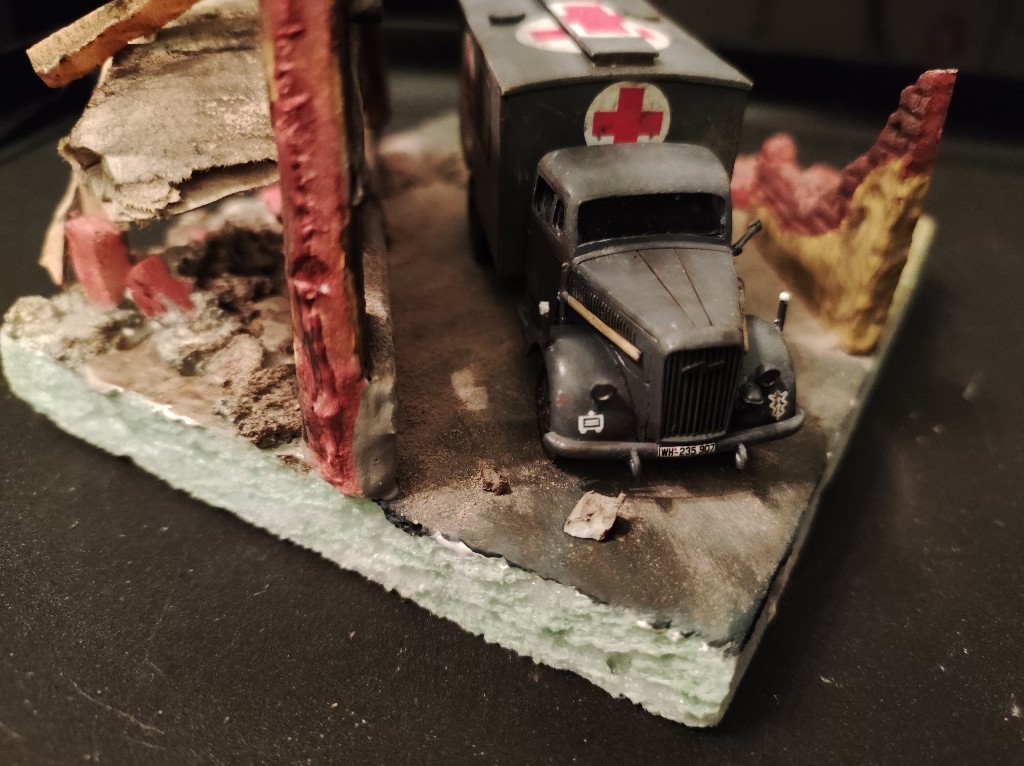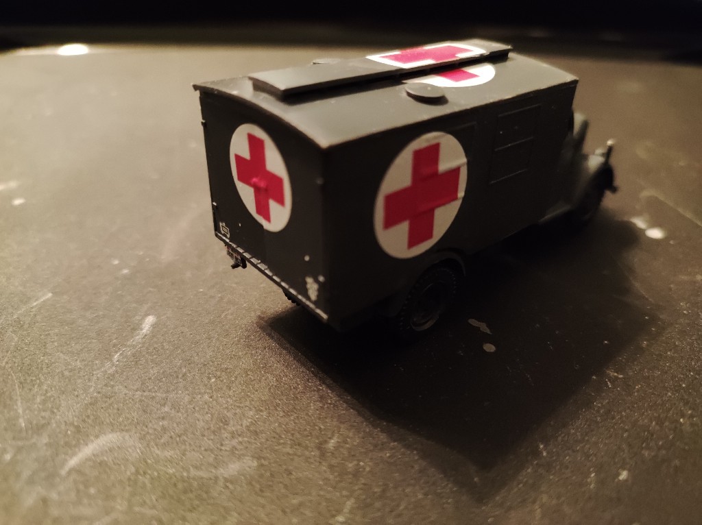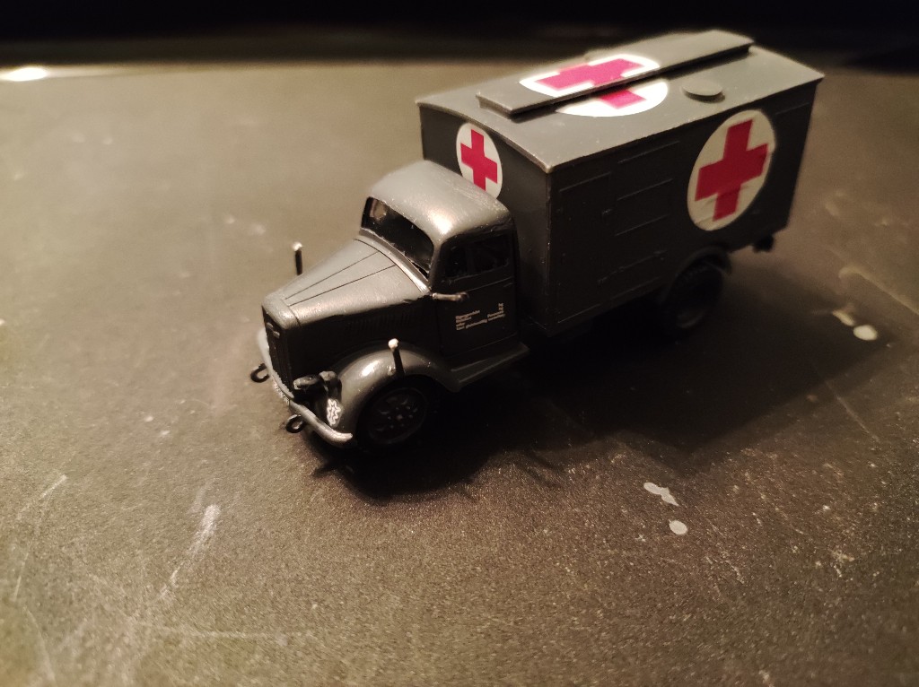 Doch was solls werden? Ich bin aktuell dabei diesen LKW in der Schlacht von Sedan 1940 darzustellen, wie er am Verbandsplatz zwei Soldaten abholt.