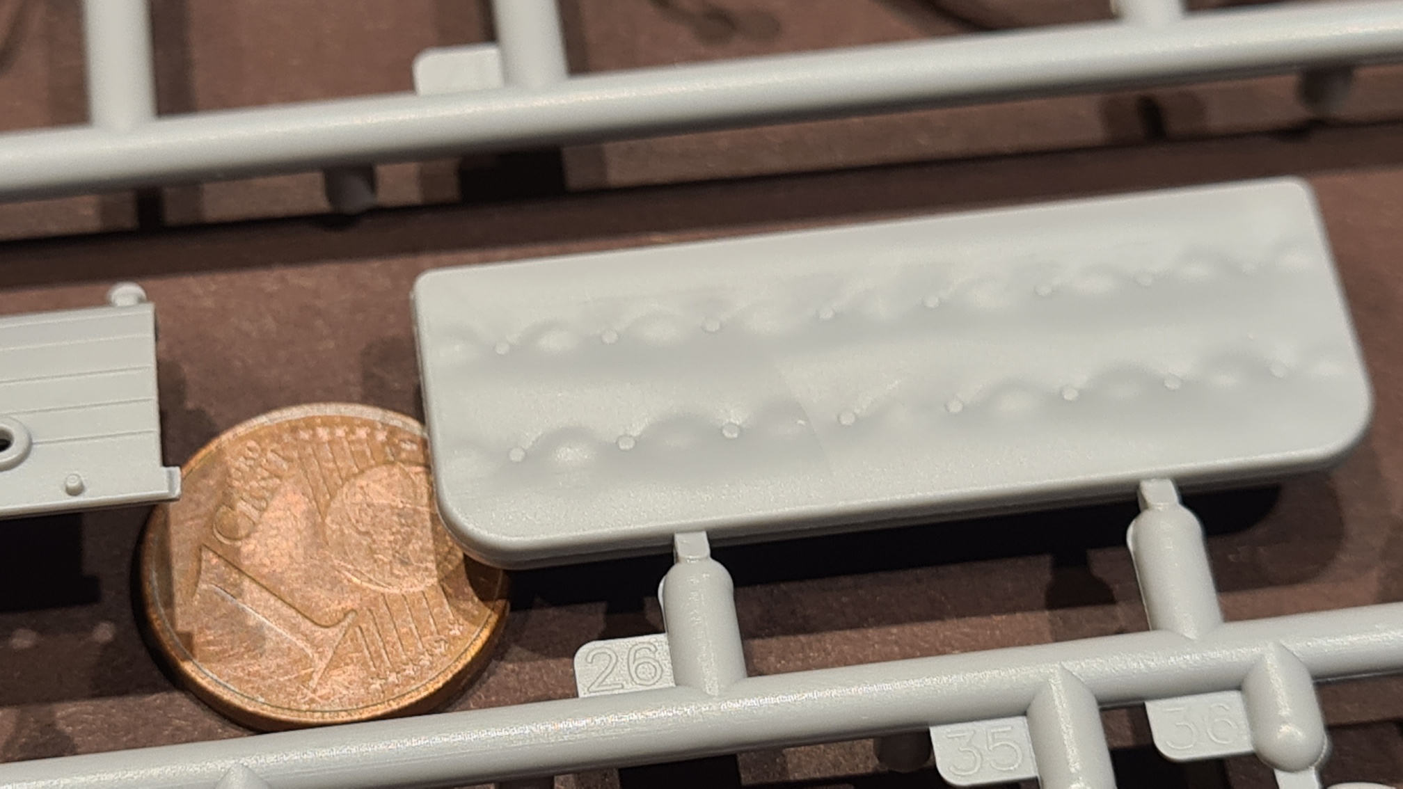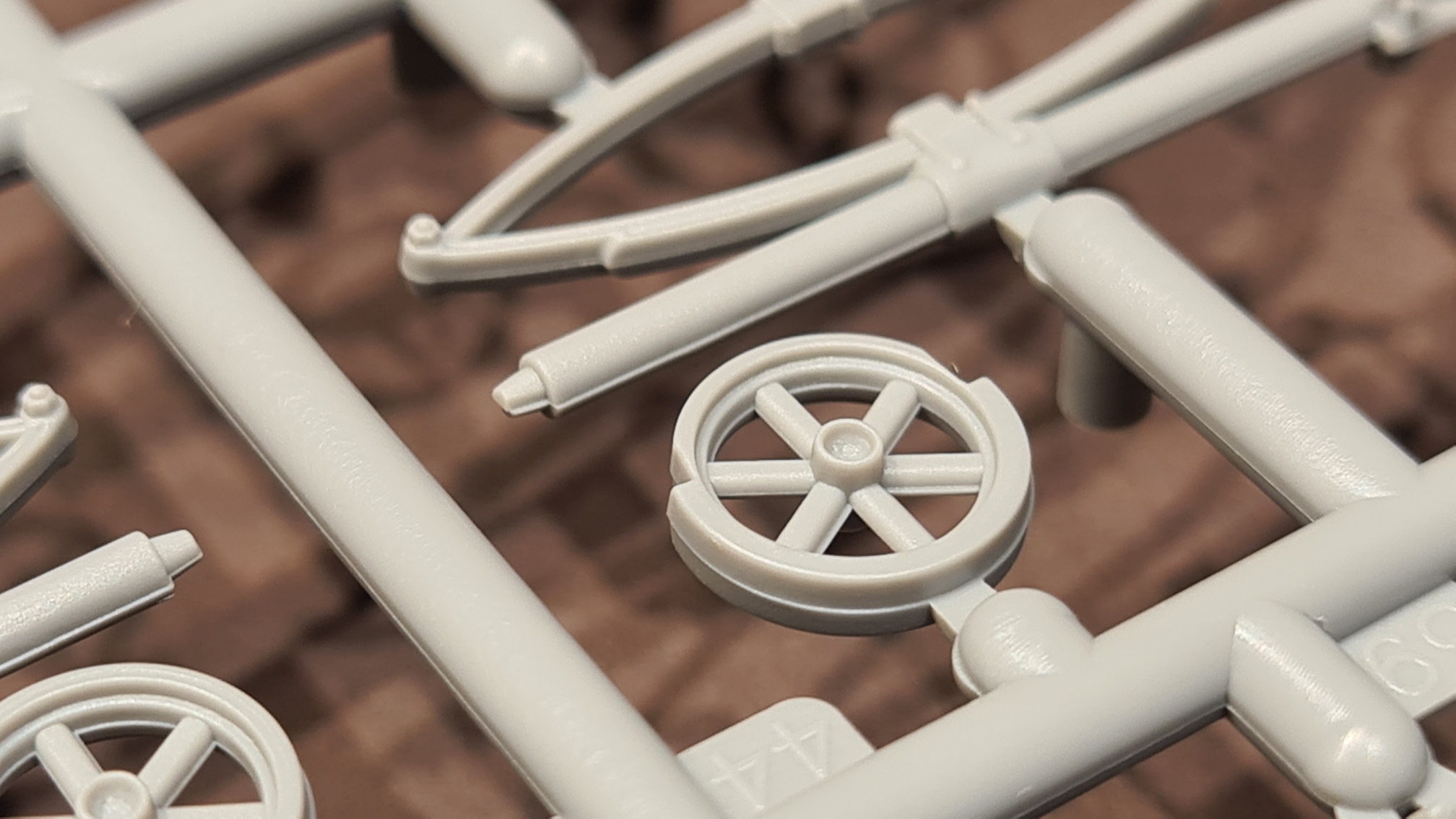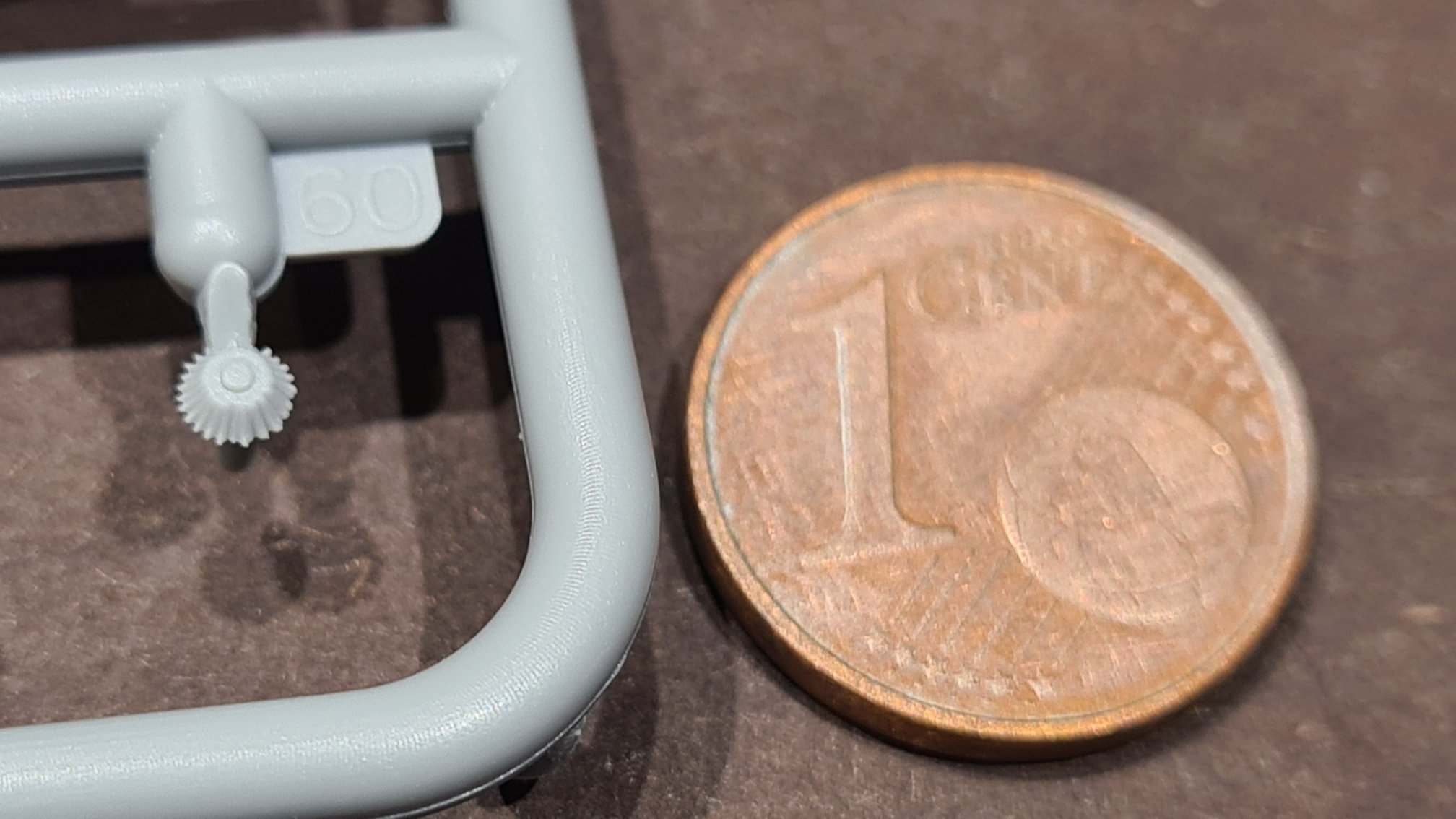 Die Details sind dabei durchaus sehr ansprechend. Man beachte die Zähne der Zahnräder. Aber warum um alles in der Welt, hat man das Teil nicht an einer anderen Stelle mit dem Gussast verbunden?