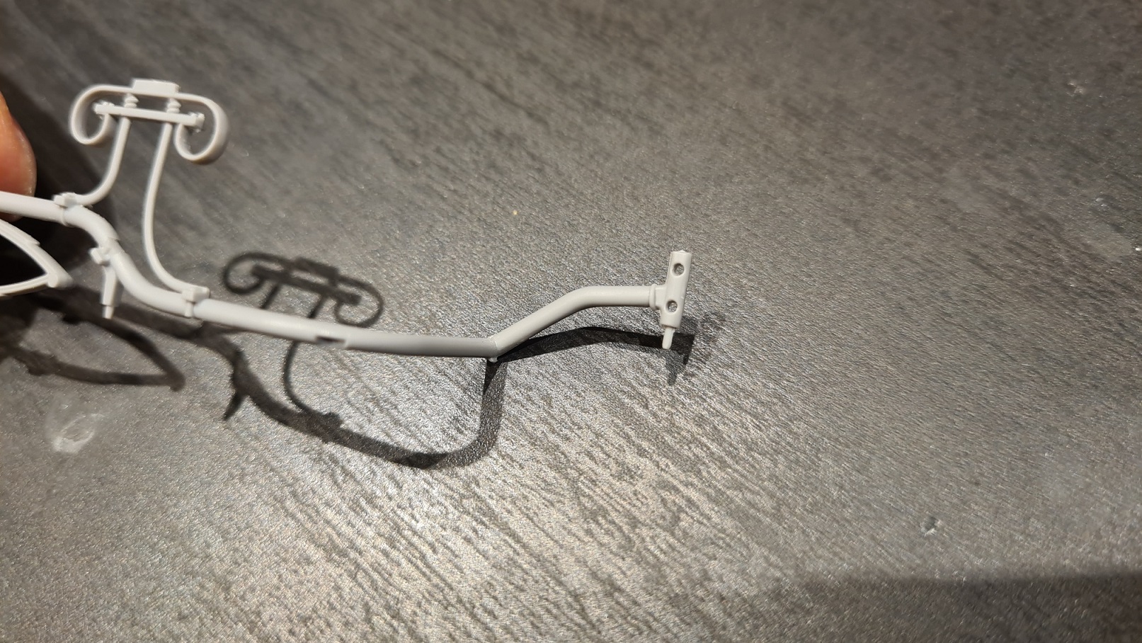 Soviel also zur Einleitung. Los ging es dann mit der Versäuberung der ersten beiden Hauptteile des Rahmens. Beim trockenen Zusammensetzen fiel mir dann auf, dass das anders als in der Anleitung aussieht. Mein Spritzguss ist leider kaputt geliefert worden: