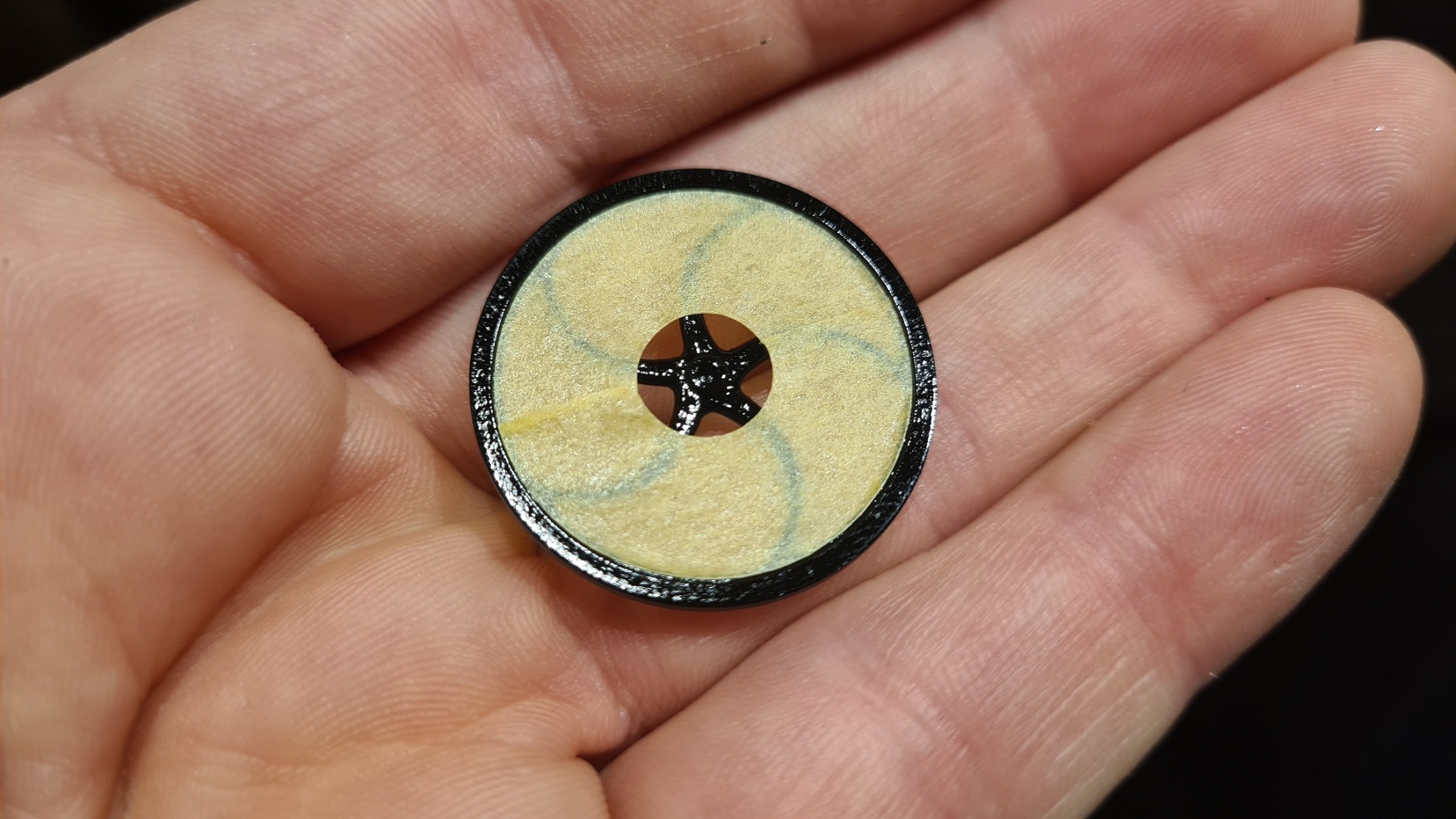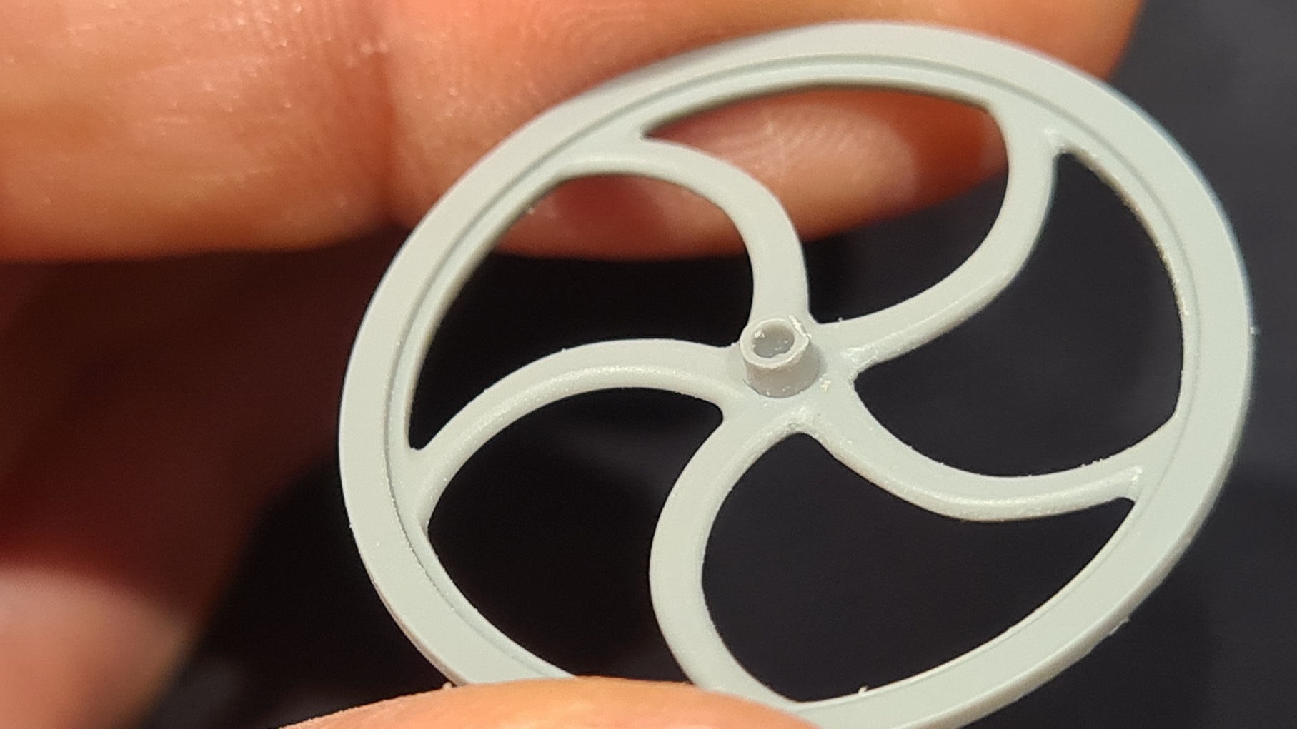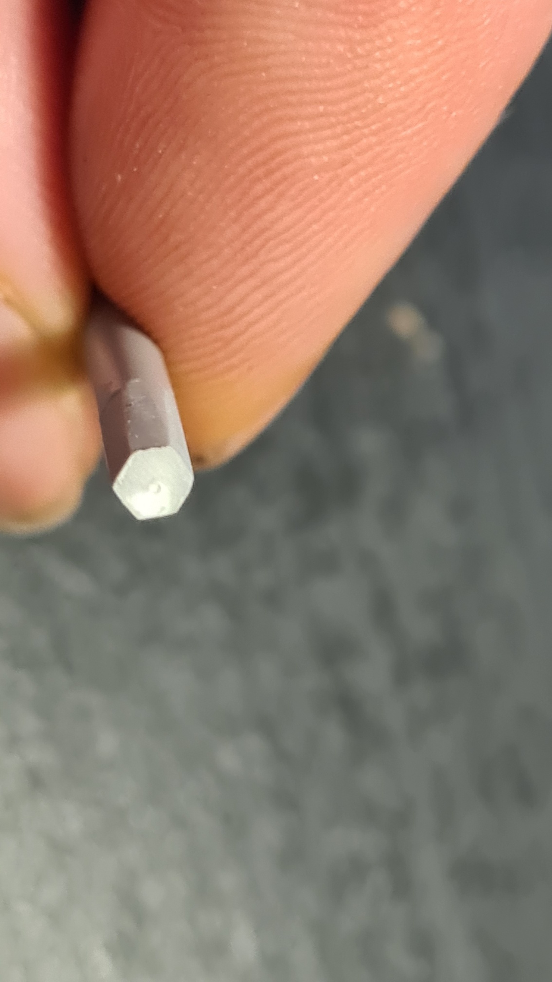 Zum Formen habe ich zum einen eine Glasfeile genommen und für den Schlitz und das spätere Abtrennen eine Resinsäge. Immer alles auf minimaler Drehzahl. Hier das Endergebnis. Nicht perfekt, vielleicht etwas zu groß geraten, aber besser als ein fehlendes Teil: