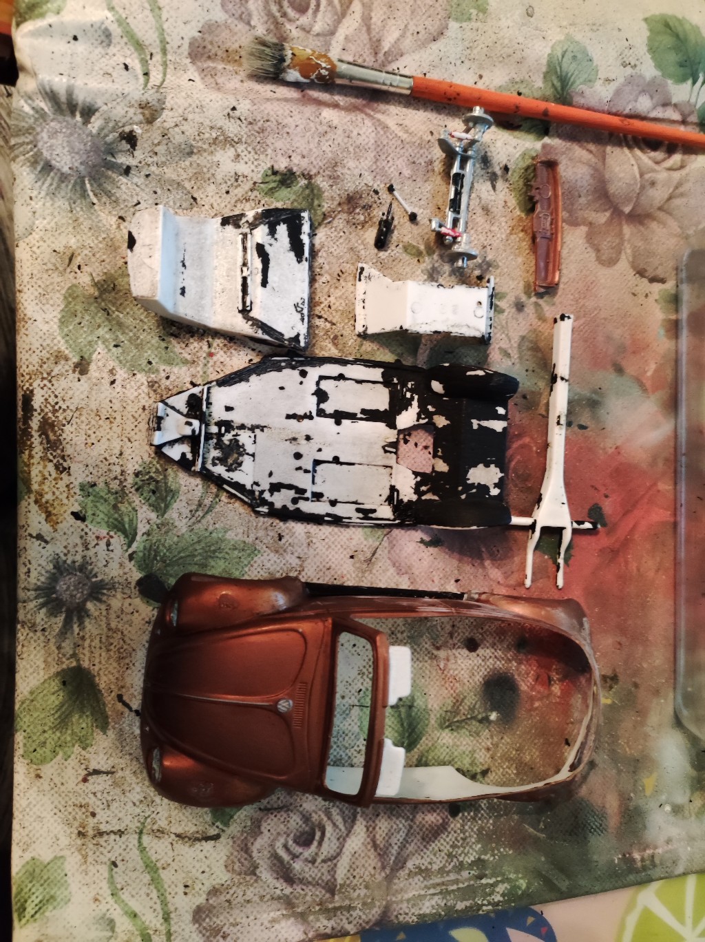 Witzig oder ironisch: ich habe auch einen alten Käferbausatz (George Barris mit dieser Rolls-Haube), bei dem der Lack nur matt wurde. Dovanol nahm nur den Glanz. Mehr nicht. Wenn ich den mal anpacke, dann grundiere ich einfach drüber und glotze, was daraus wird