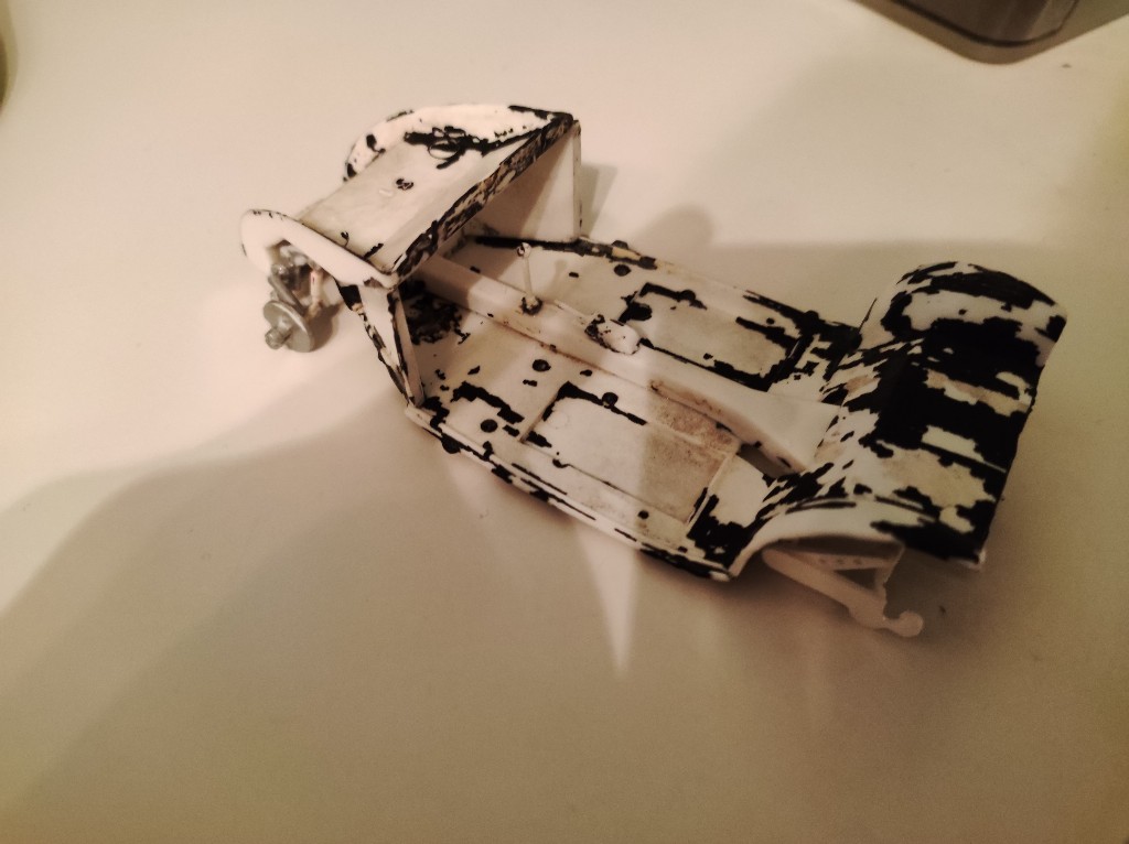 So mich hat es jetzt einfach geärgert, den Bau abbrechen zu wollen, gerade weil ich schon viel Zeit investiert habe, also habe ich jetzt einfach die Karosse weiter abgeschliffen und die ersten Teile wieder zusammen gesetzt.