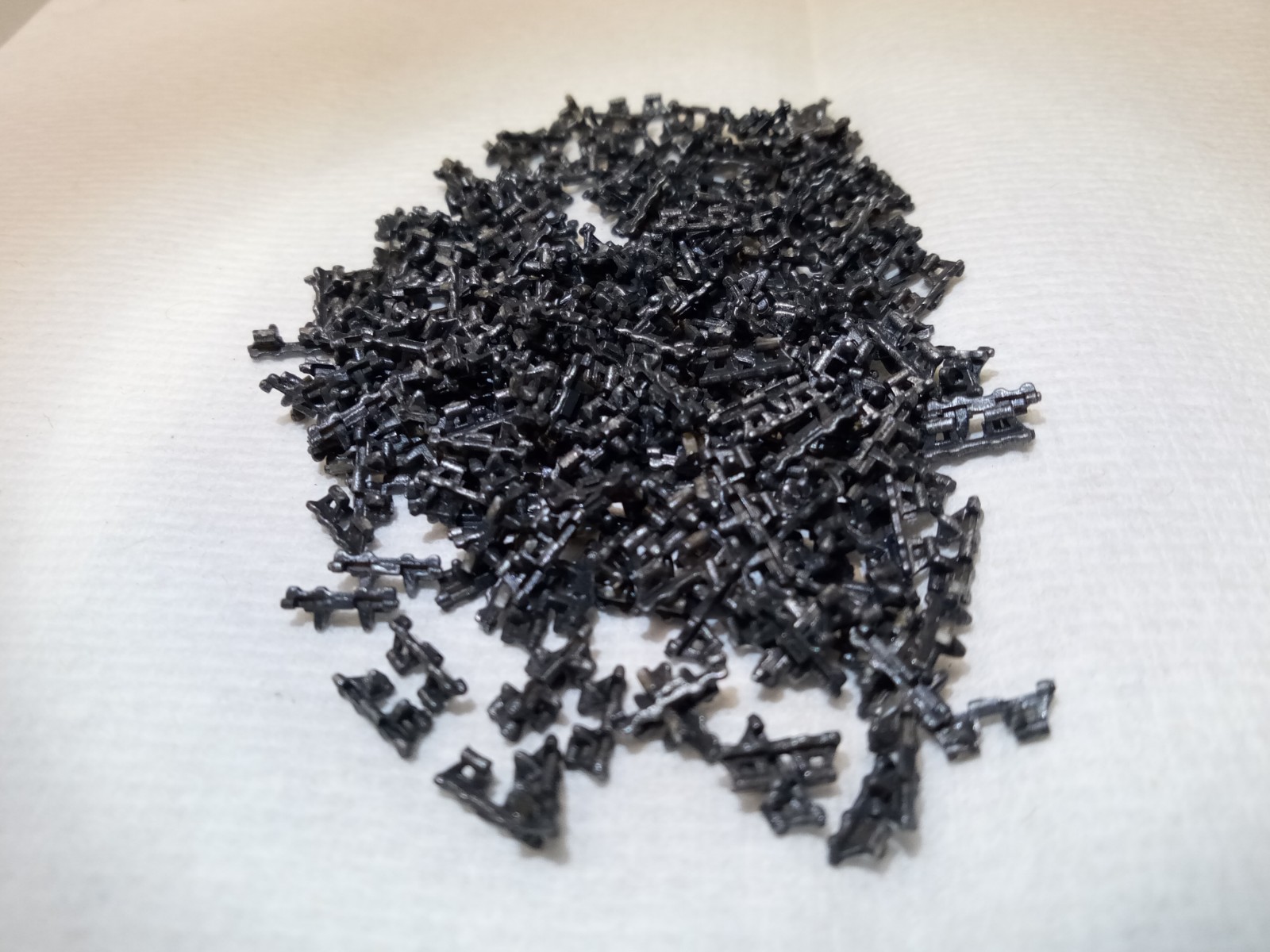 Danach wurden die Teile vom Gießast getrennt und versäubert.