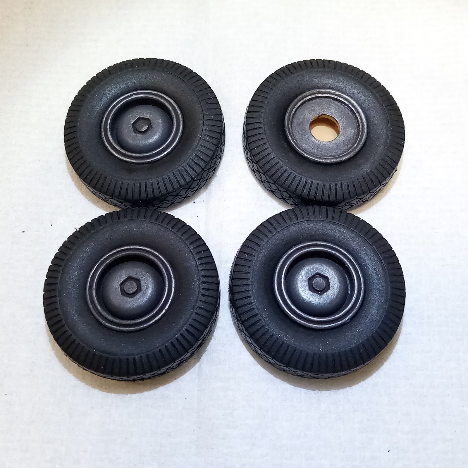Die Felgen bestehen aus jeweils 2 Teilen und einem Gummireifen.