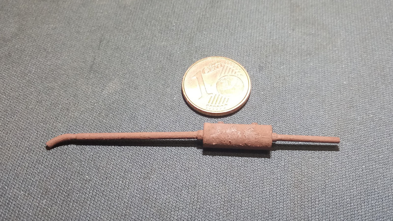 Bemalt wurde noch am Gießast mit Anthrazit, gefolgt von einem Trockenmalen in Eisenfarbe.