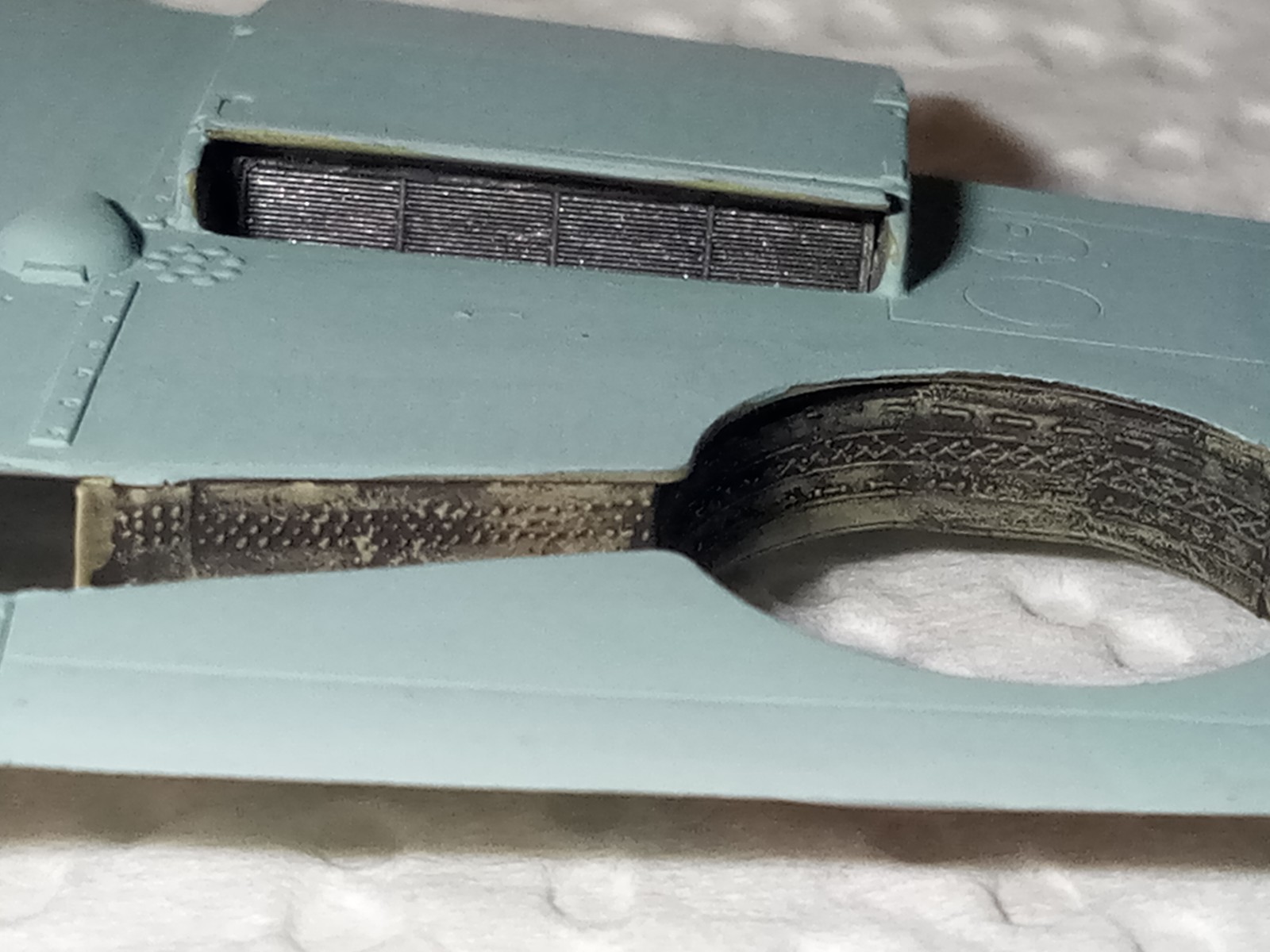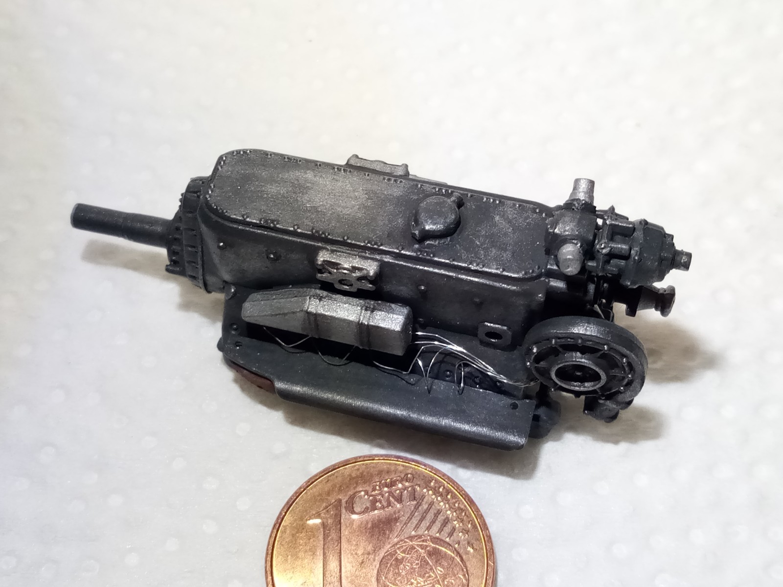 Dieses wurde verklebt und mit Revell Aqua Color Panzergrau 78 bemalt.