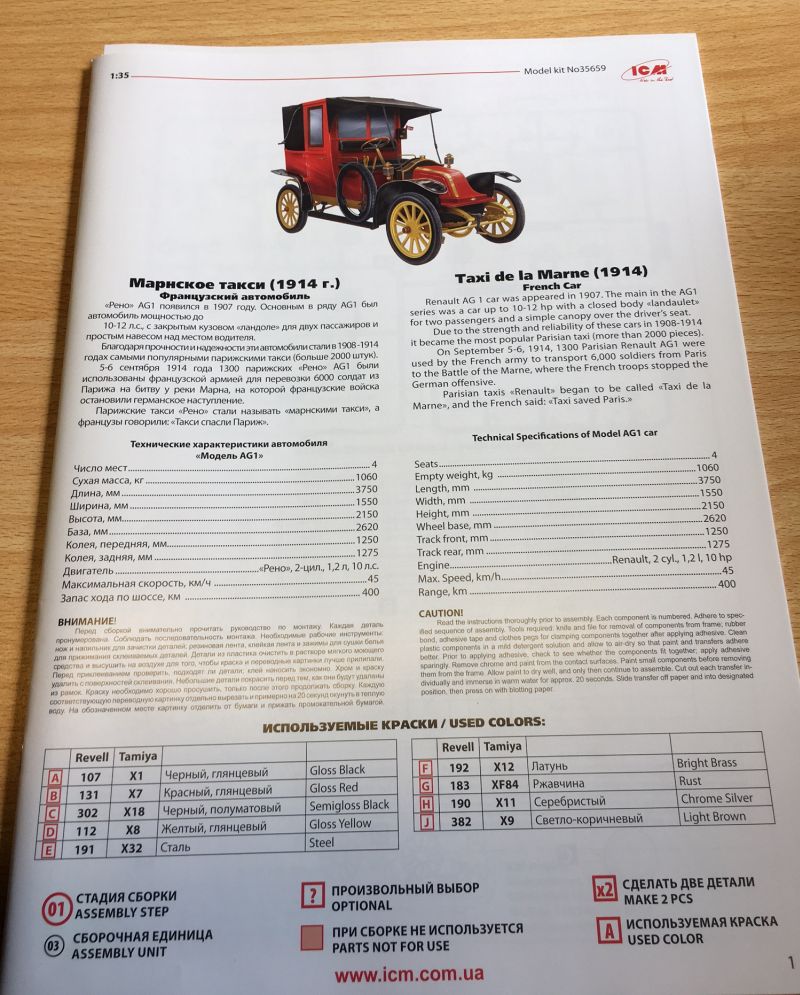 Die Bauanleitung ist in Ukrainisch und Englisch und sehr ausführlich. Die Farbangaben beziehen sich auf Farben von Revell und Tamiya.