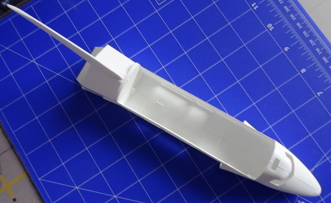 Die notwendigen Spachtelarbeiten mache ich später, wenn ich die Tragflächen an den Rumpf klebe.