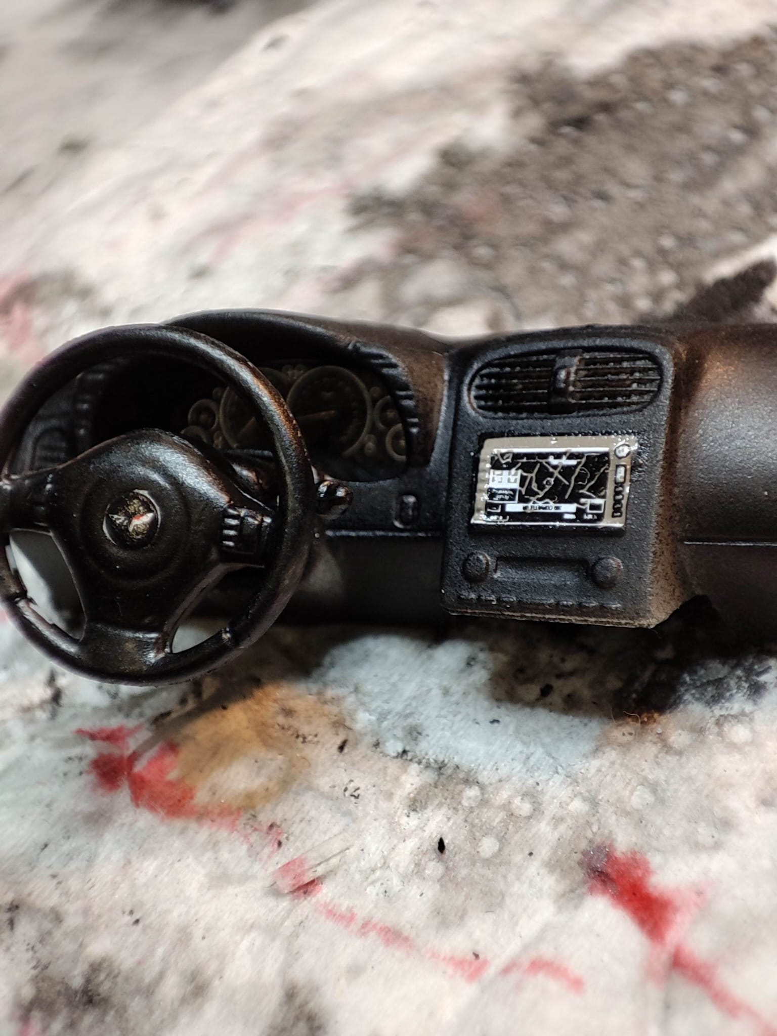 Bei der Innenausstattung ist es hier augenscheinlich nur die Abdeckung im Kofferraum und Radkasten"Teppiche", die grau werden. Das kann ich mir vorstellen. Den Rest würde ich dunkler machen. Komplett grau ist für mich nicht unbedingt logisch, wenn sitze und Türverkleidung schwarz werden. Ich würde das farblich abstimmen.