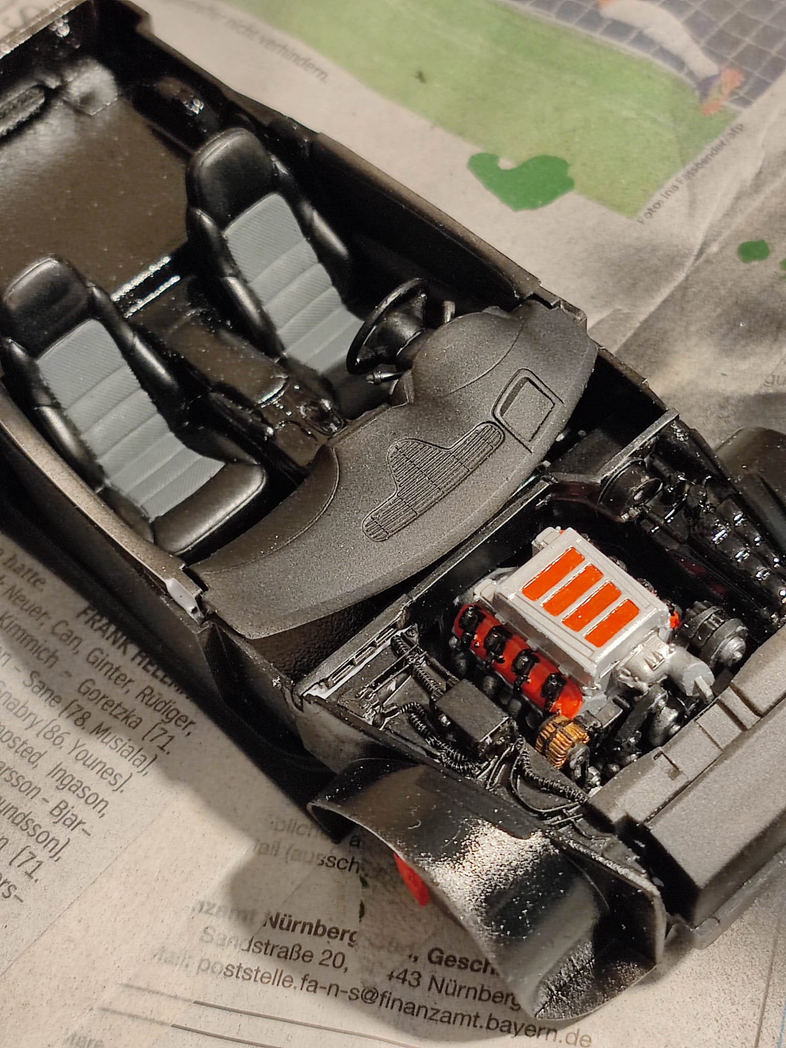 Die Corvette meiner Frau war schwarz.... also wird diese auch schwarz. Allerdings gönne ich ihr einen Motor der "Hero Edition", also nicht schwarz-blau, sondern rot-schwarz.