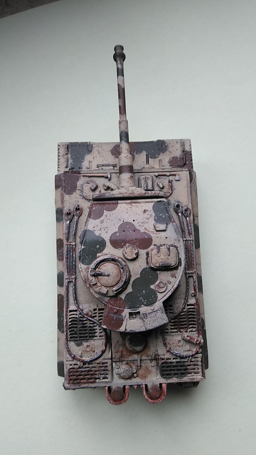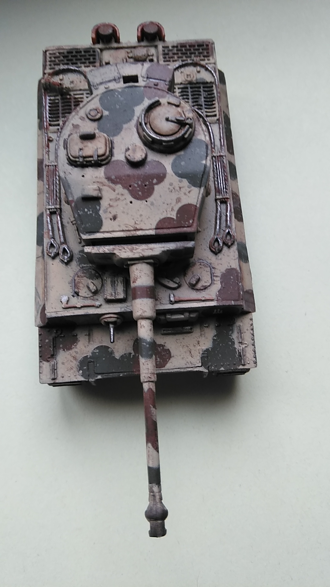 Prinzipiell sehr gut lackiert, aber das Tarnschema ist falsch skaliert. So wie du es gemacht hast, wirkt sie viel zu groß. Das passt eher für 1:35 oder 1:16