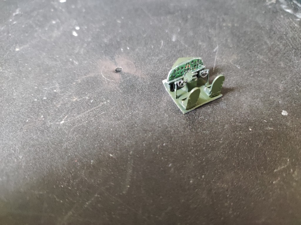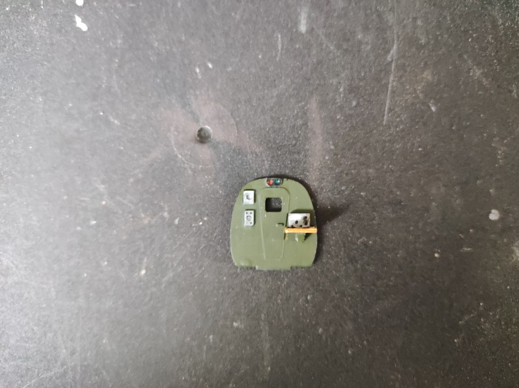 Die Steuerknüppel sind ähnlich aufgebaut mit nur zwei Teilen. Ansonsten haben wir noch das Instrumentbrett mit vorgeprägten Anzeigen, die dann per Decals Dargestellt wurden. Hier wäre es besser gewesen, auf die Farbe des Instrumentenbretts zu Verzichten und nur die Anzeigen zu drucken.