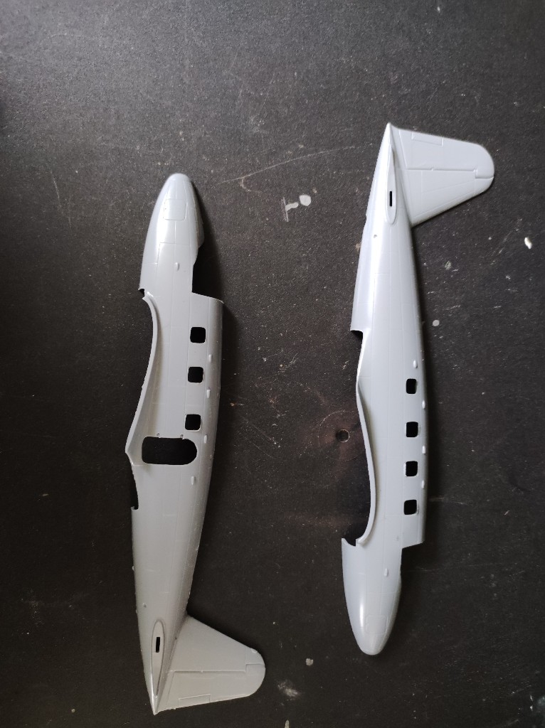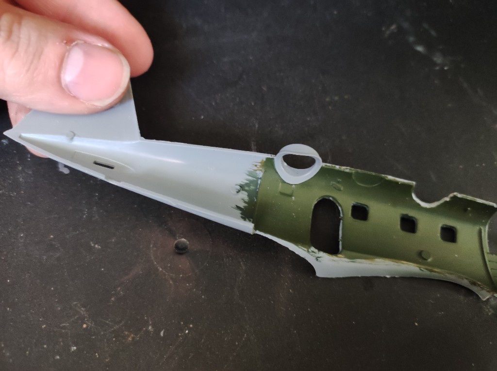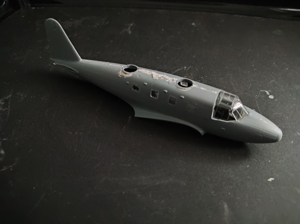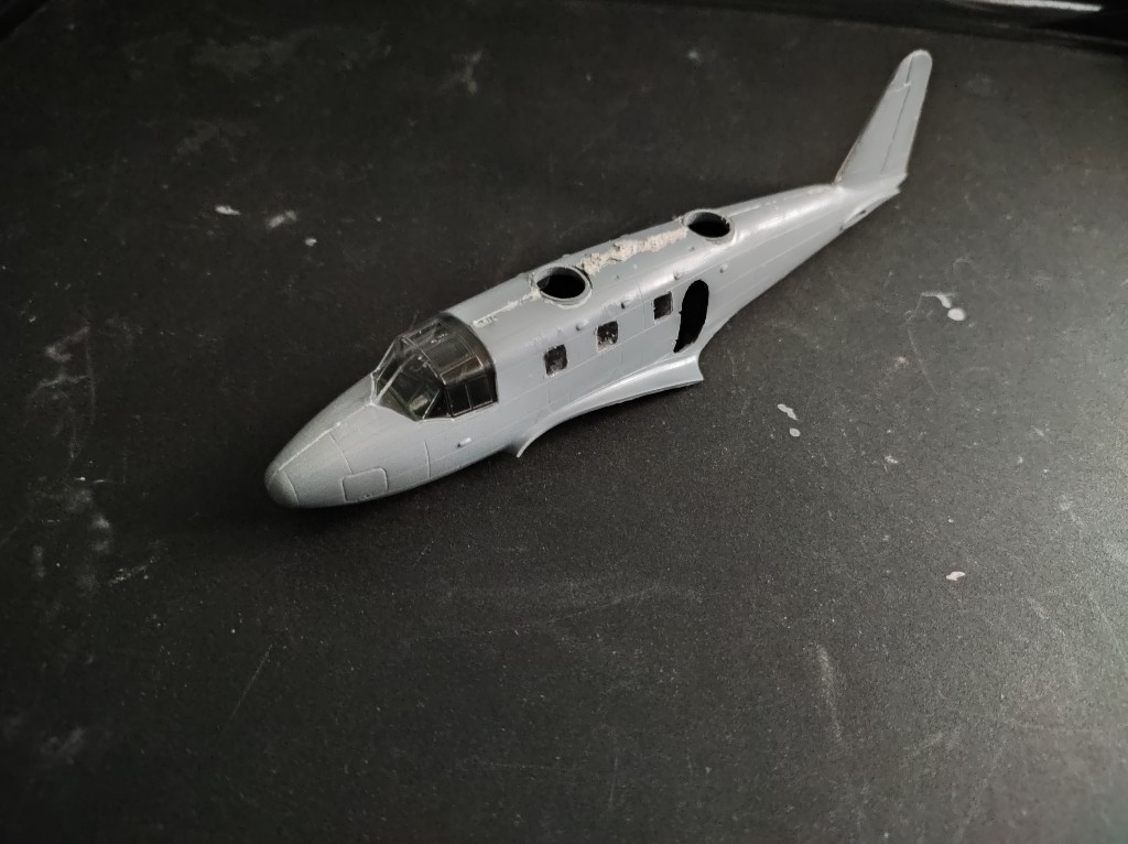 Ein was habe ich vergessen zu erwähnen, es gab ein kleinen Zwischenfall, mir ist beim Fenster einsetzen der Rumpf gebrochen, mittlerweile ist der Schaden behoben, so sah das aber aus: