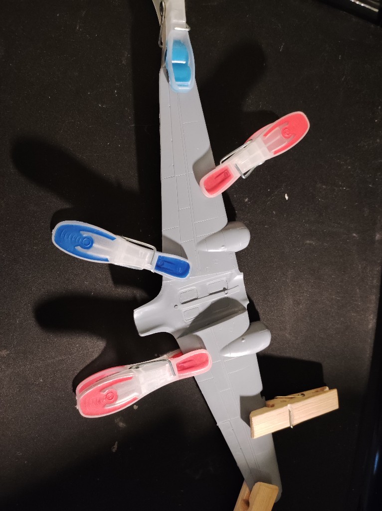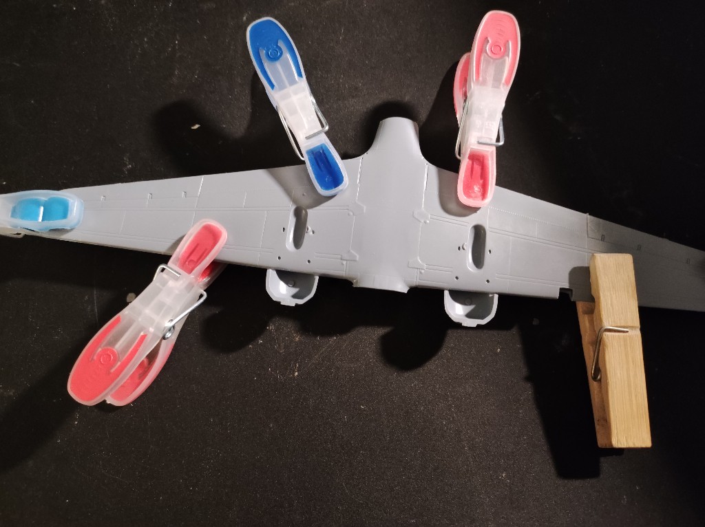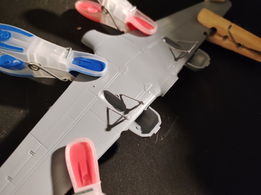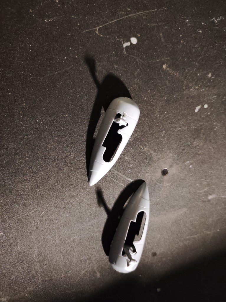 So nun müssen Flügel und Rumpf verheiratet werden. Hierzu haben ich erstmal die Gondeln angebracht. Ich nutze die Lange Variante. Hier müsste auch schon das Fahrwerk vorbereitet werden.