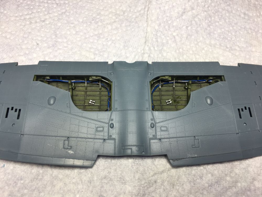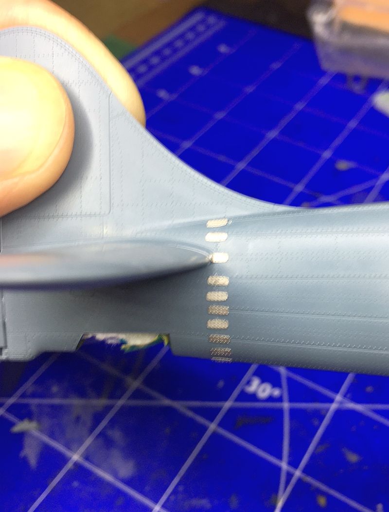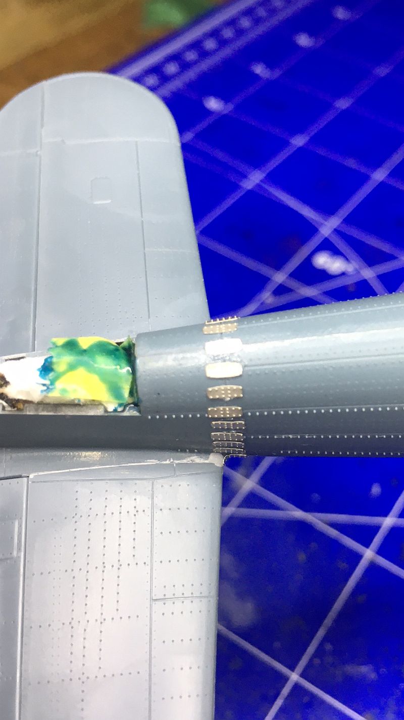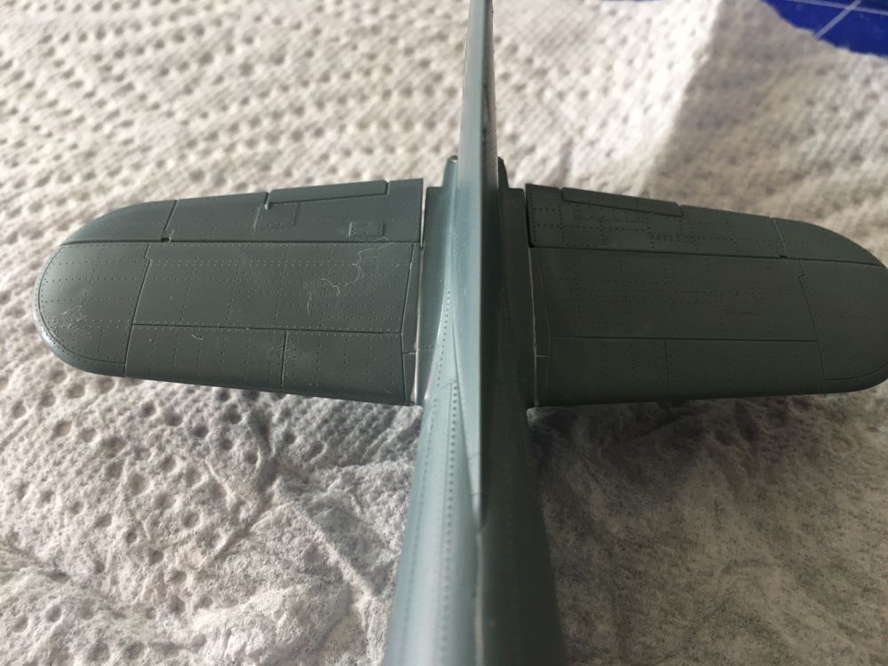 An den Flügelwurzeln war dies mit Vallejo Acylputty gut möglich, da die Spalte recht dünn waren. Den kann man nach kurzer Trocknung super mit einem feuchten Wattestäbchen glattziehen. Das spart das schleifen und schont die Details.