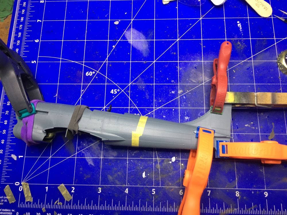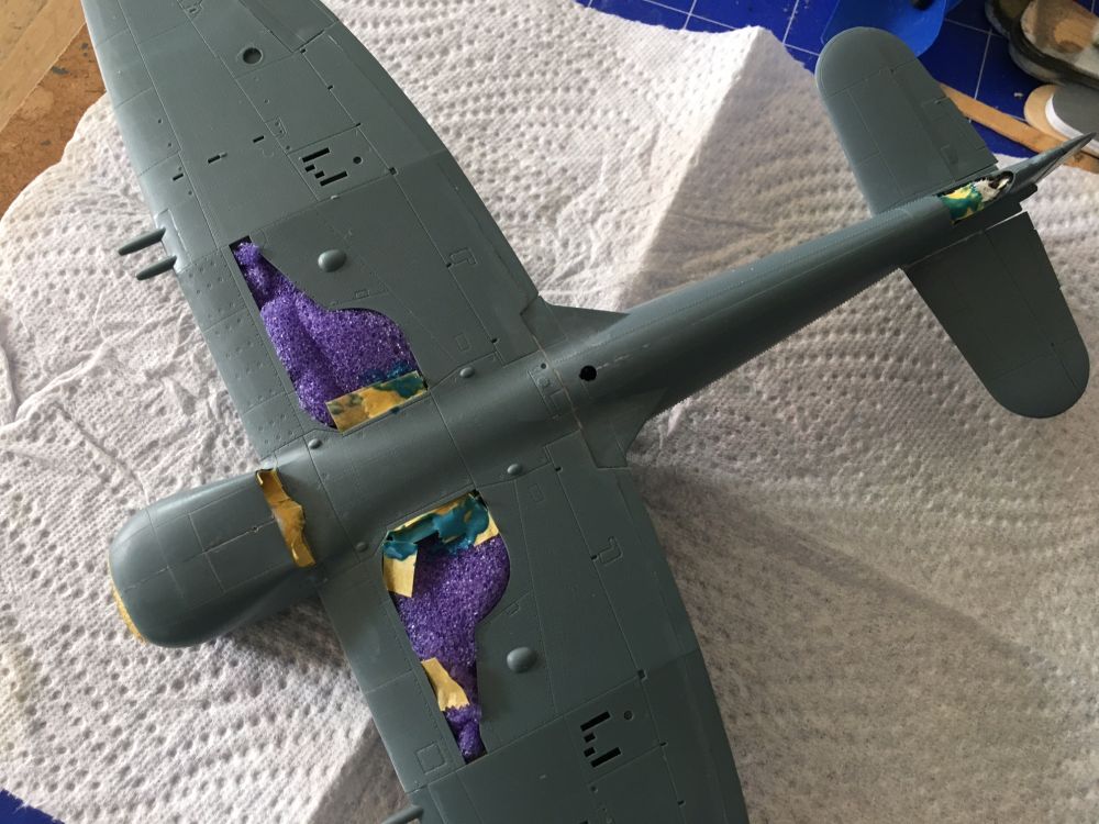 Mittlerweile sind der Rumpf und die Flügel verheiratet. Alles passte ganz gut, musste an den Nähten jedoch nachgearbeitet werden.