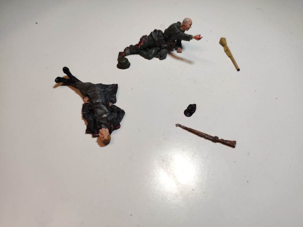 Zwei Figuren vom Volkssturm wurden bereits bemalt, man merkt zwar die mindere Qualität, aber es ist verkraftbar. Mit Farbe lässt sich viel Kaschieren