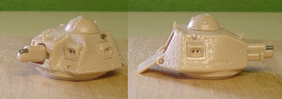 Die 2,5 cm Granaten enthalten ja nicht so viel Sprengstoff, wenn aber Munition getroffen wird, reicht es den Turm ( ohne große Beschädigung ) von der Wanne zu drücken. Die Gegenhalter sind dann verbogen, aber der Turm ist noch relative heile. Wie in diesem Fall!!Beim Turm bin ich skeptisch: